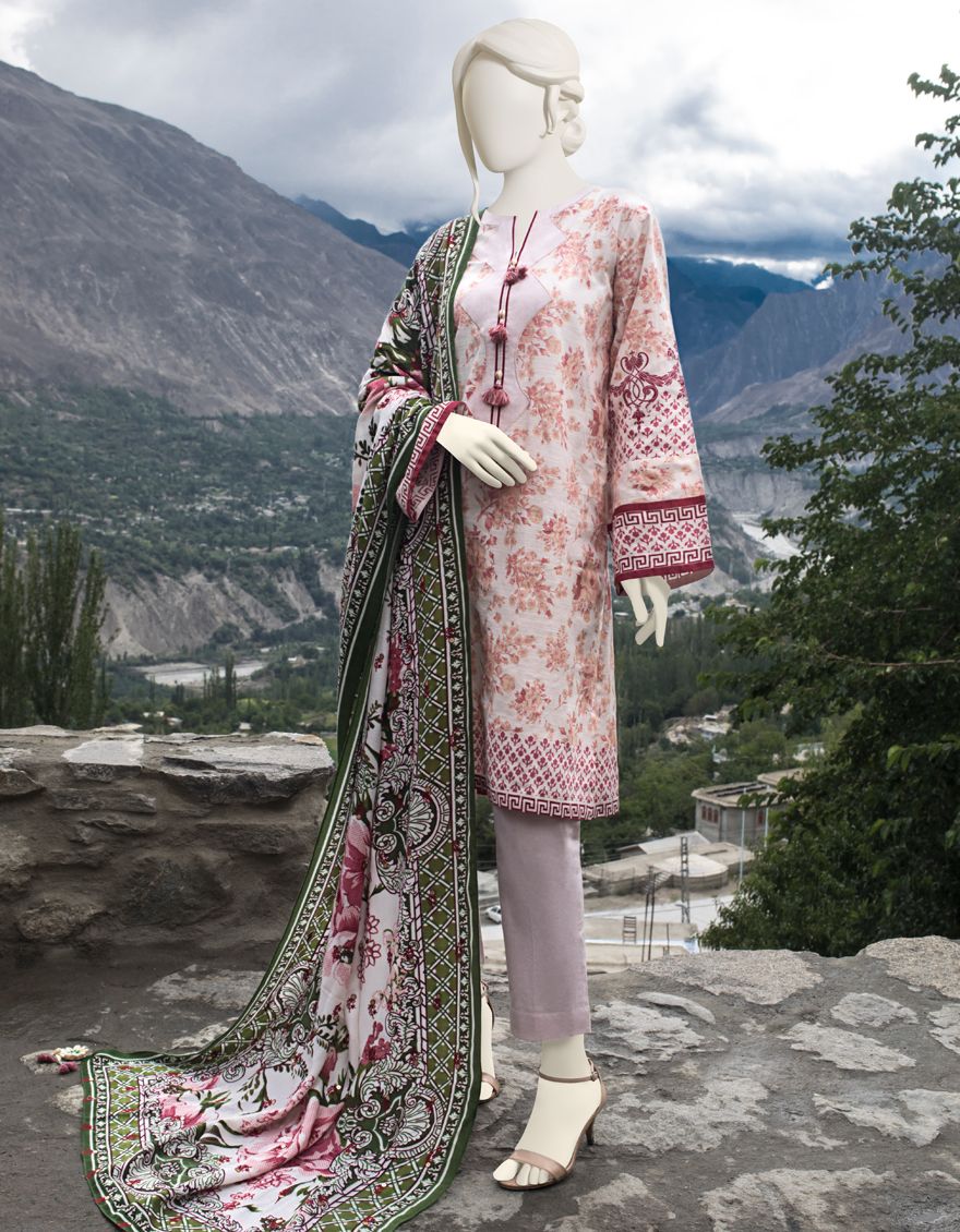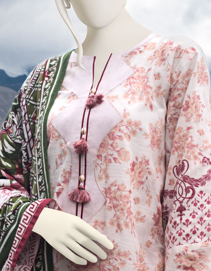 CREAM-PINK KHADDAR 3PC UNSTITCHED | JJLS-W-JWU-US-21-1804 FB/THE GARDEN