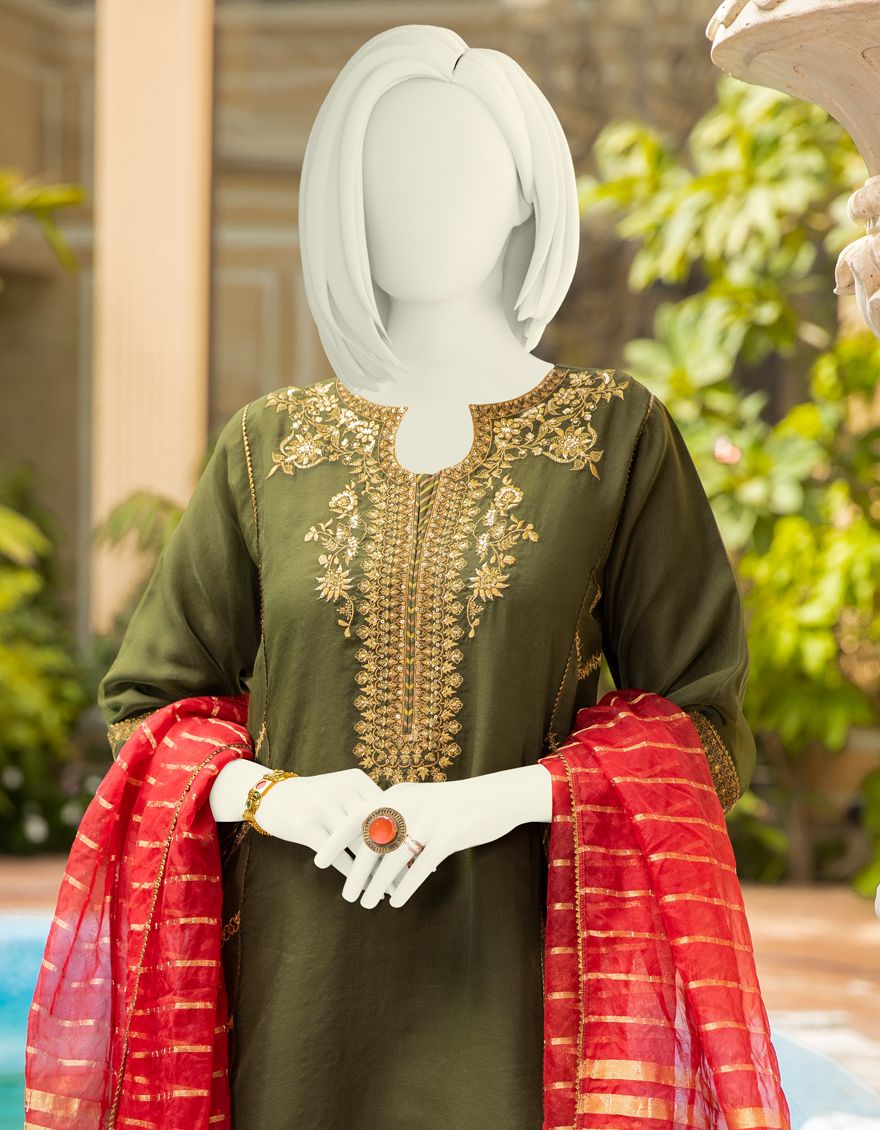 Collection Type: Embroidered Dyed Semi Formal Shirt - Dyed Laced/Cut Semi Formal Trouser - Embroidered Dyed Semi Formal Dupatta