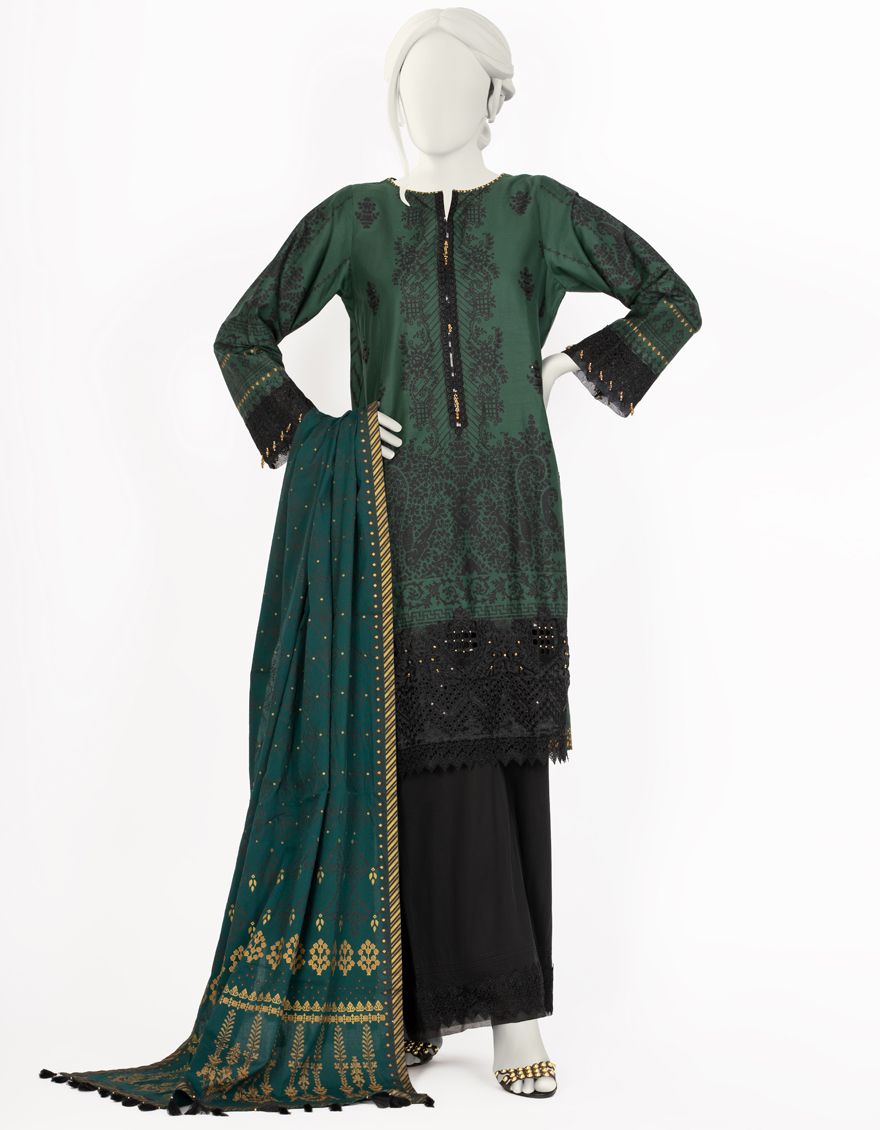 Collection Type: 3 Pcs- Screen Printed Dupatta With Printed Shirt And Dyed Pants