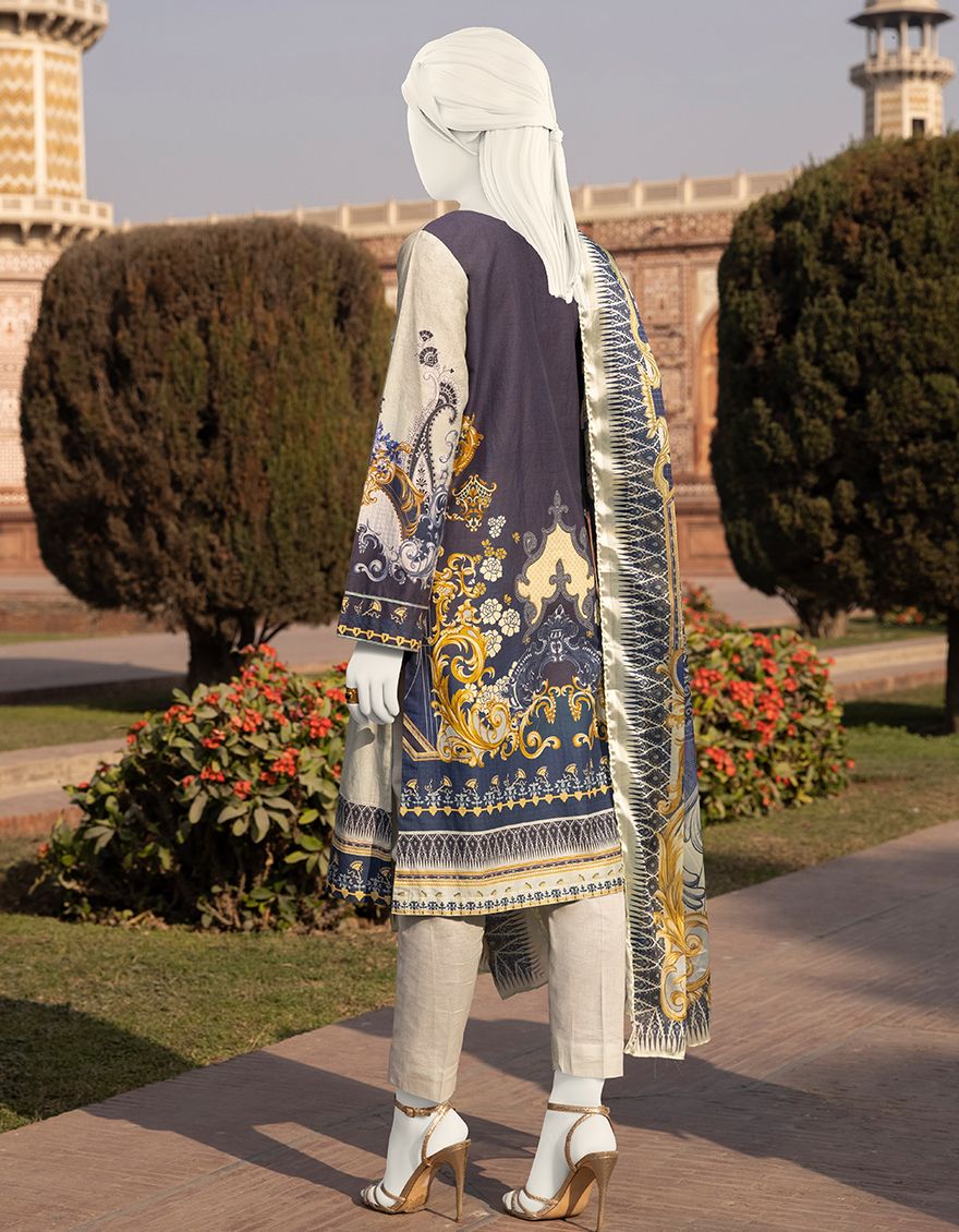 Embroidered Digital Print Cambric Shirt - Dyed Basic Cambric Trouser - Basic Digital Print Silk Dupatta