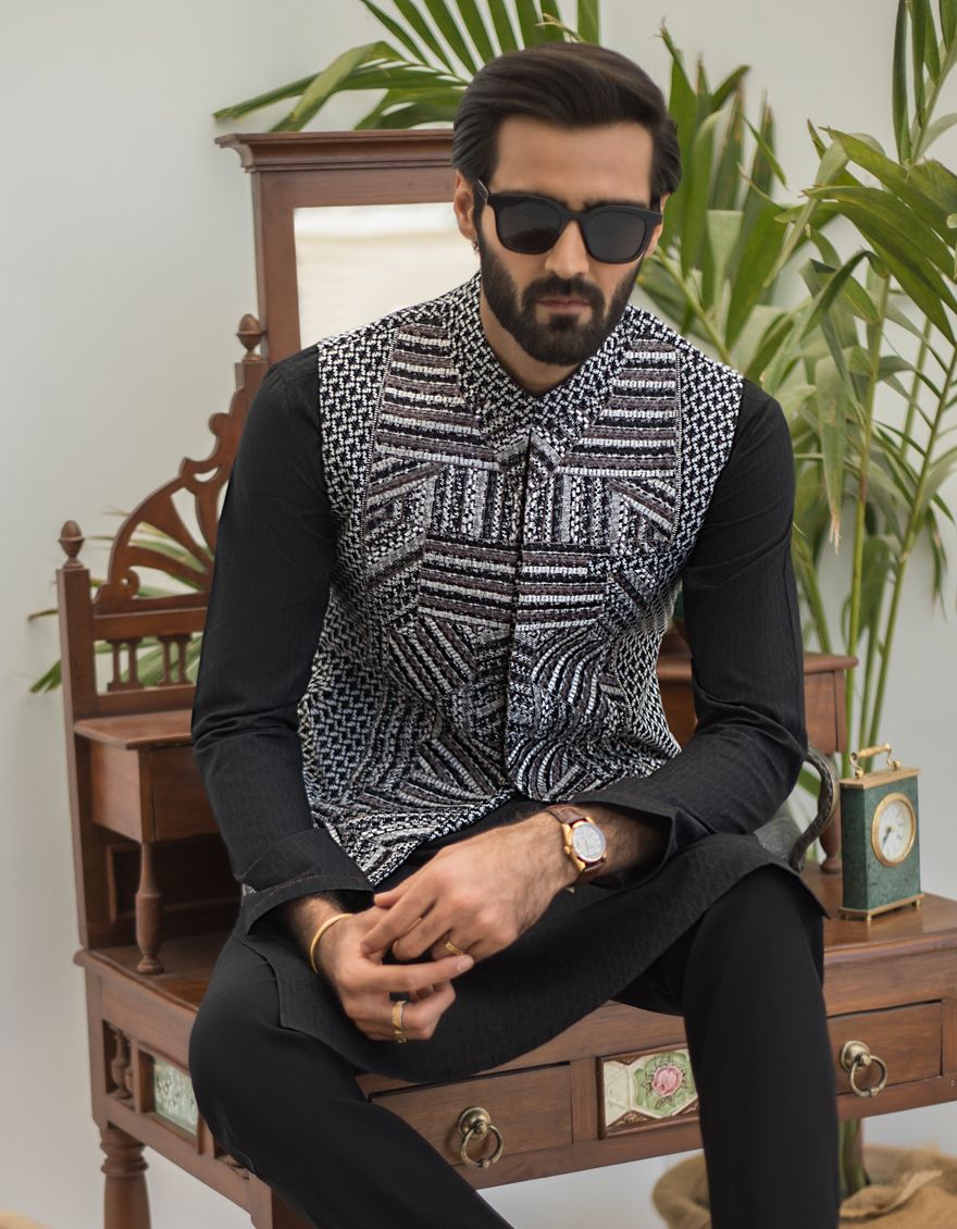Formal Men Waistcoat With Computerized Machine & Hand Work