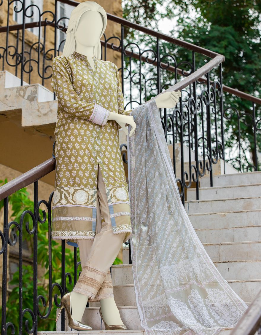 DUSTY GREEN LAWN 2PC UNSTITCHED | JLAWN-S-JDS-US-21-1092 MITTHI
