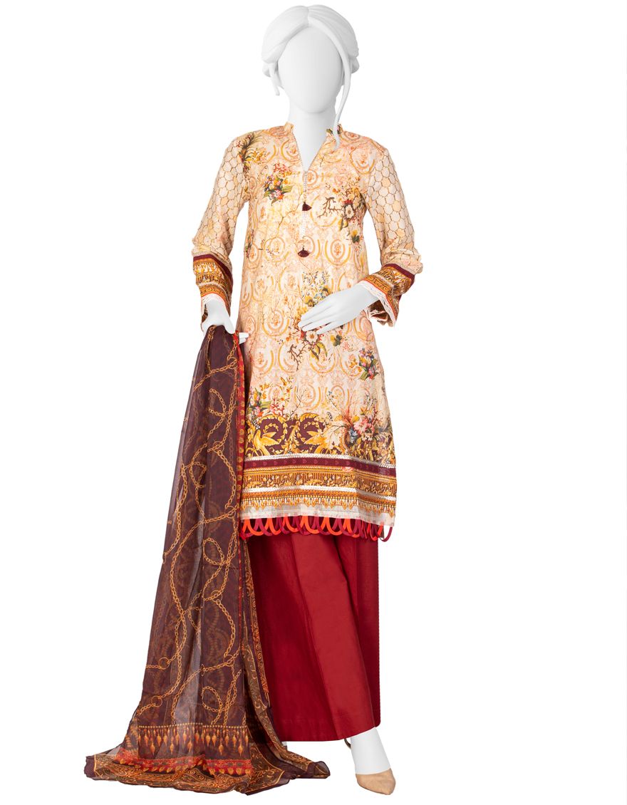 Basic Mill Print Lawn Shirt - Basic Mill Print Impure Chiffon Dupatta