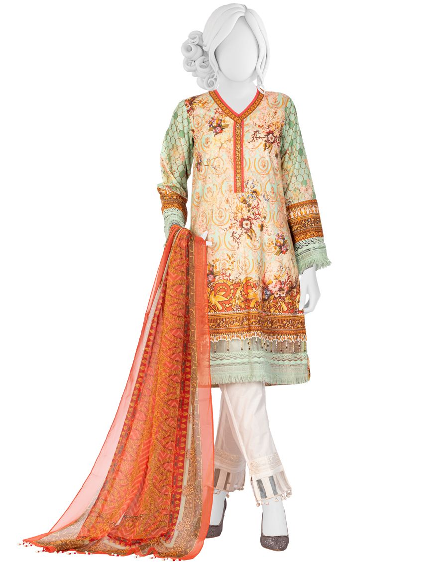 Basic Mill Print Lawn Shirt - Basic Mill Print Impure Chiffon Dupatta