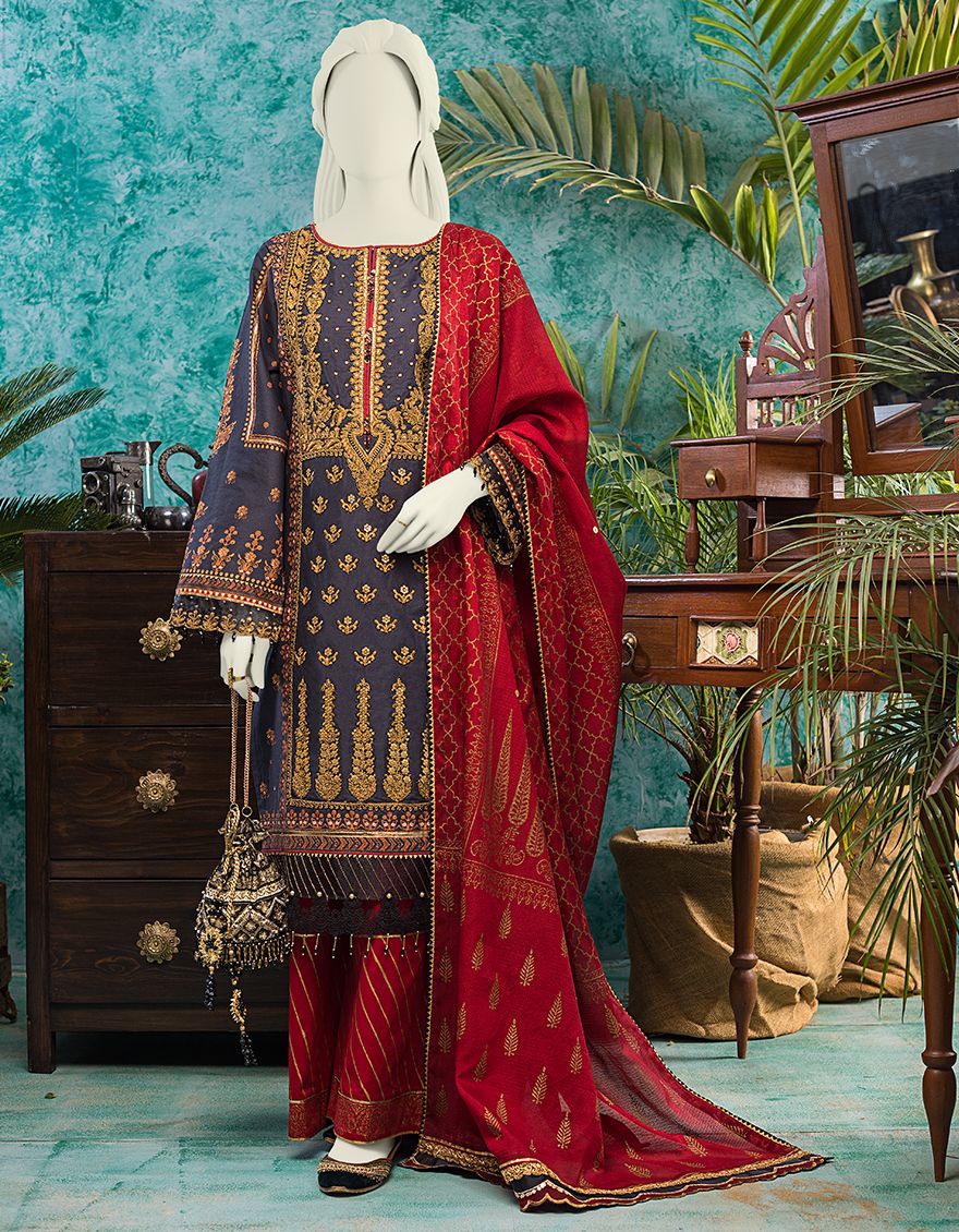 CHARCOAL LAWN 3PC UNSTITCHED | JLAWN-S-JPUS-US-21-003 JQ-567