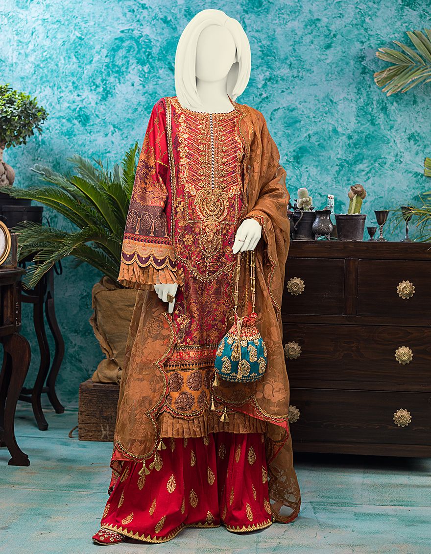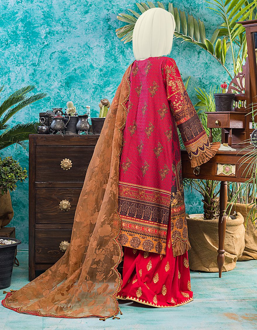 RED LAWN 3PC UNSTITCHED | JLAWN-S-JPUS-US-21-007 JA-565