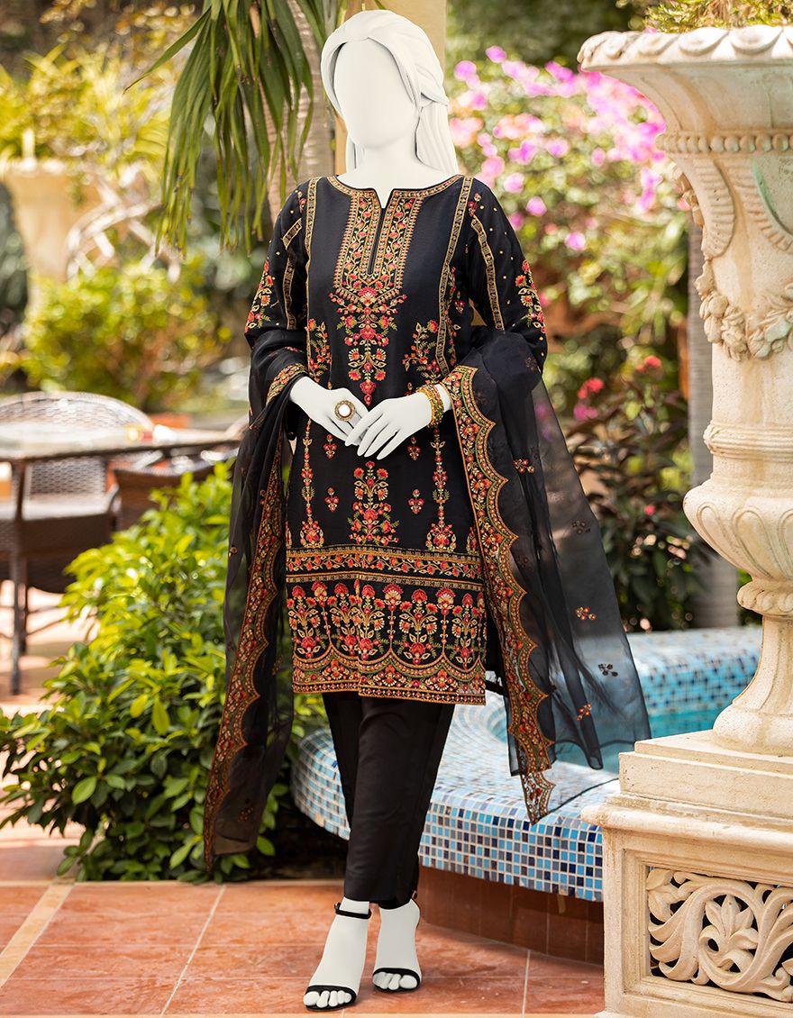 BLACK ORGANZA 3PC UNSTITCHED | JLAWN-S-JPUS-US-21-026 JPWS-21-247