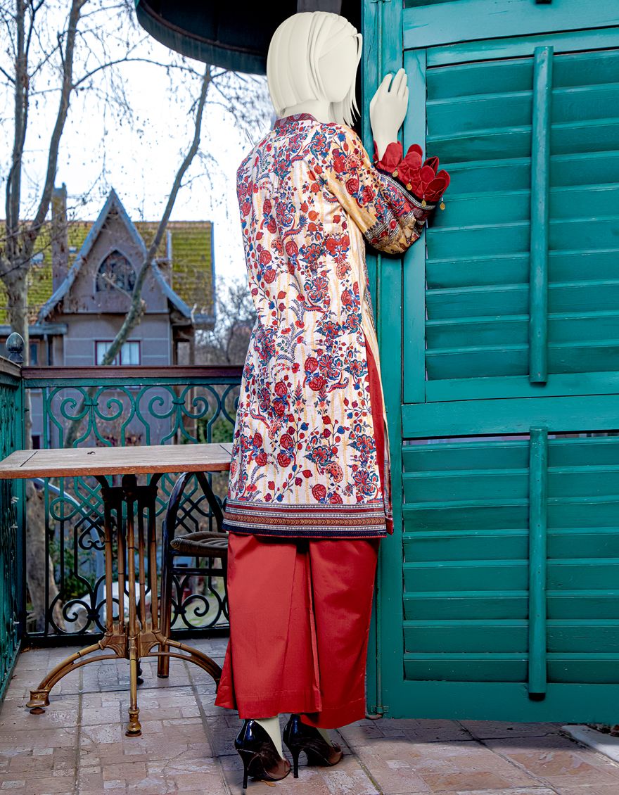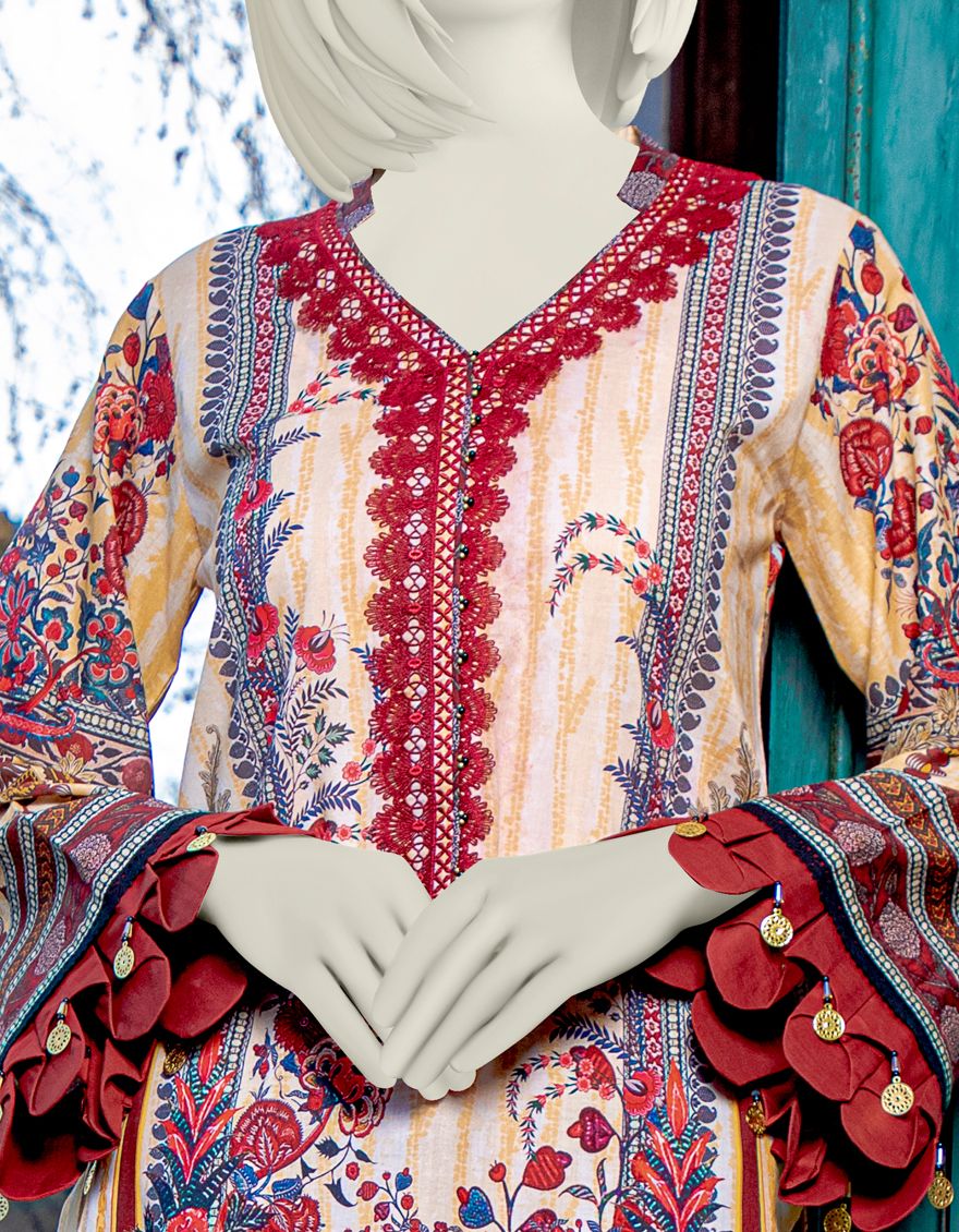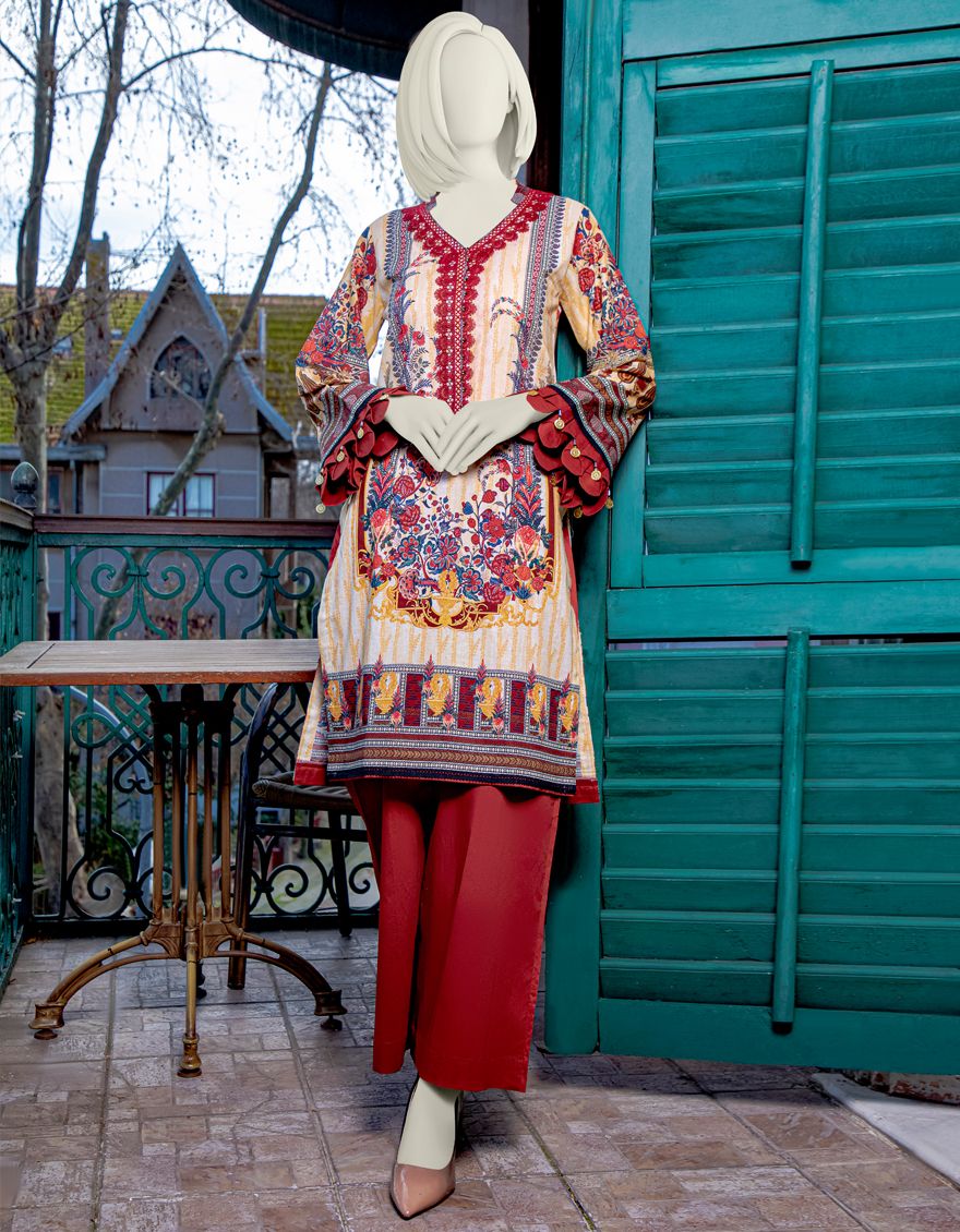 BEIGE MAROON LAWN 2PC UNSTITCHED | JLAWN-S-JST-US-21-1613 CEDAR