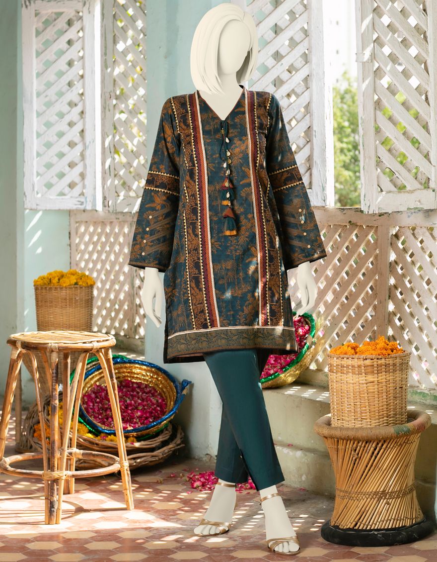 Basic Mill Print Lawn Shirt - Dyed Laced/Cut Lawn Trouser