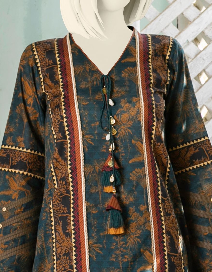 NAVY BLUE LAWN 2PC UNSTITCHED | JLAWN-S-JST-US-21-1628 PALM TREE