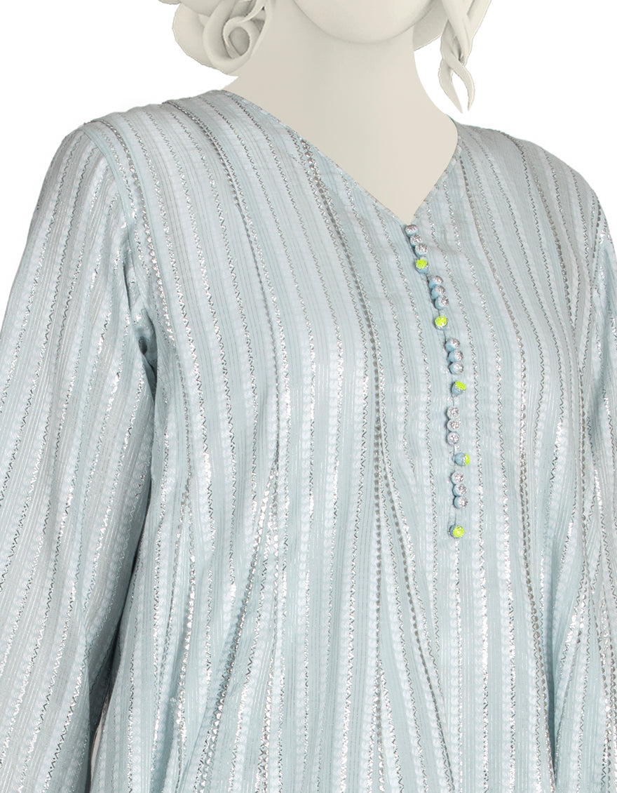 Collection Type: Hand-Woven Dyed Jacquard Shirt, Accentuated With Badla & Paired With Dyed Cambric Trouser