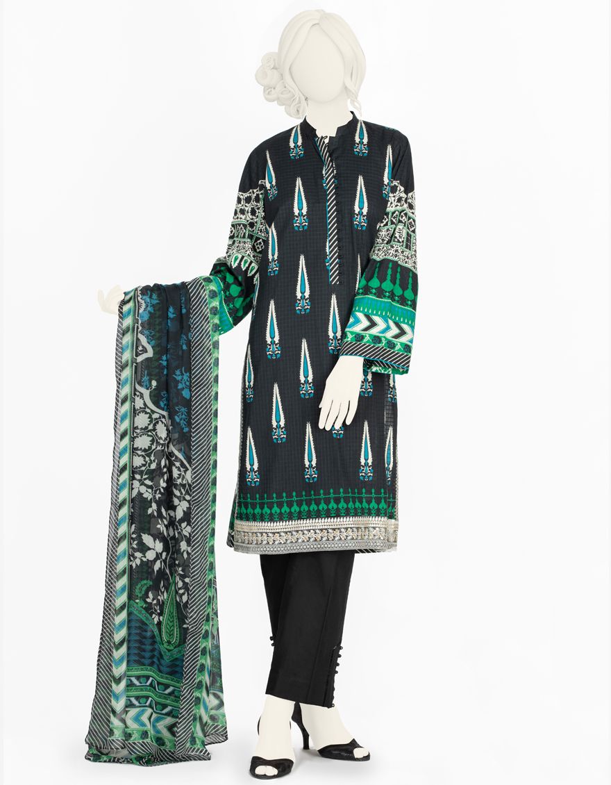 Collection Type: Heavy Embroidered Mill Print Textured Fabric Shirt - Dyed Basic Lawn Trouser - Basic Mill Print Impure Chiffon Dupatta