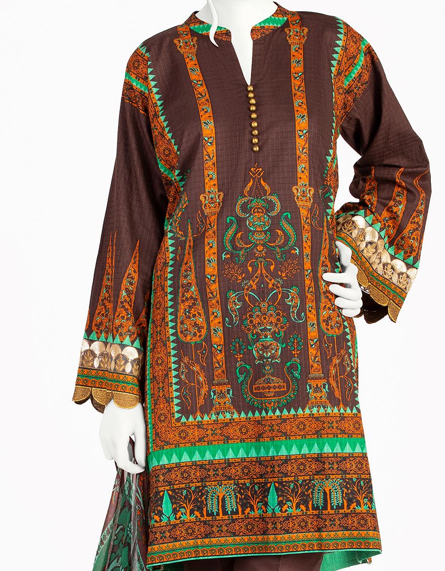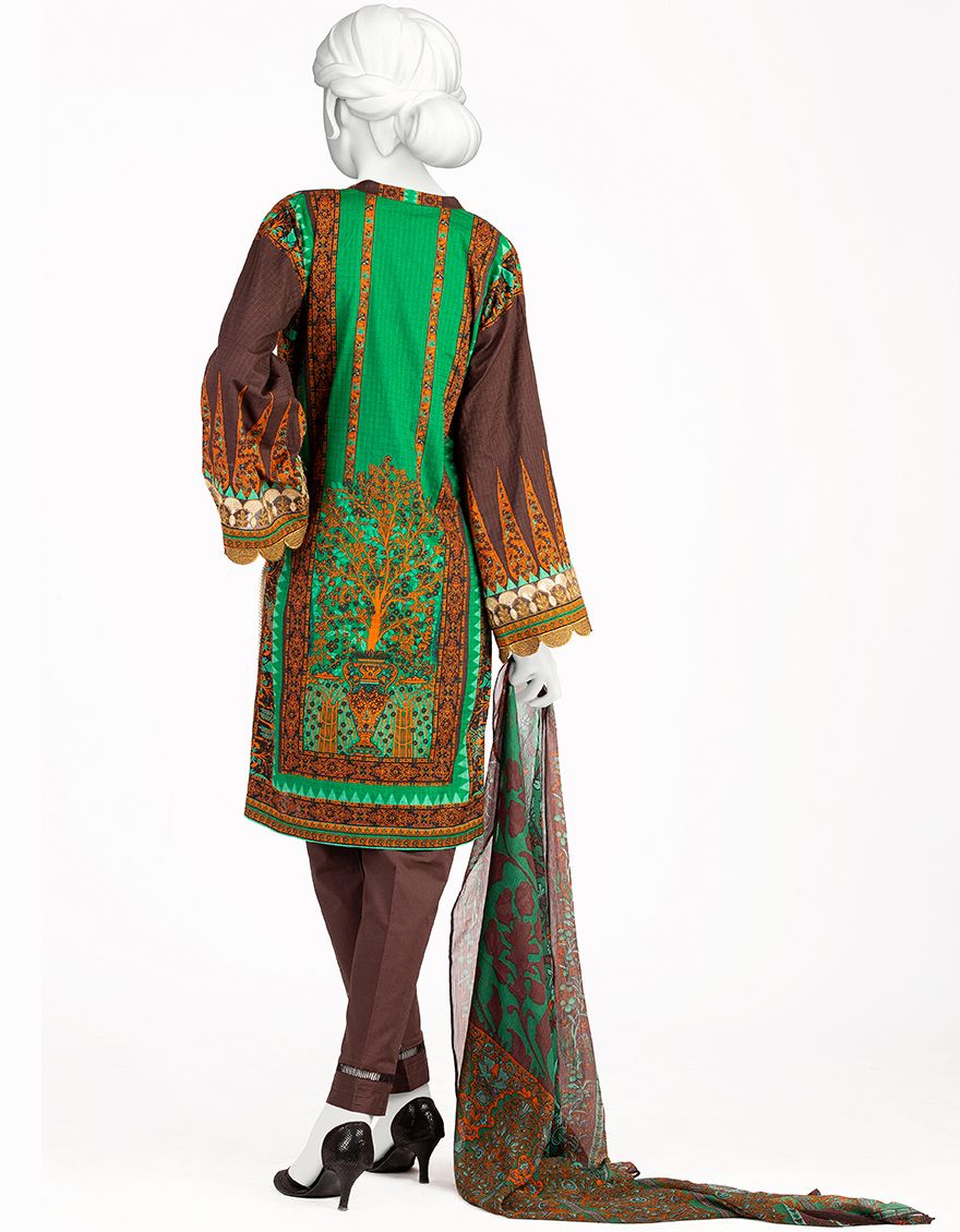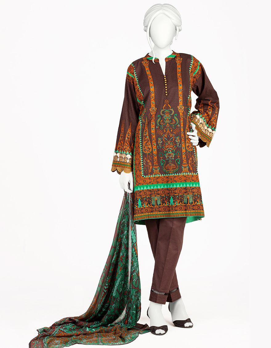 Collection Type: Heavy Embroidered Mill Print Textured Fabric Shirt - Dyed Basic Lawn Trouser - Basic Mill Print Impure Chiffon Dupatta