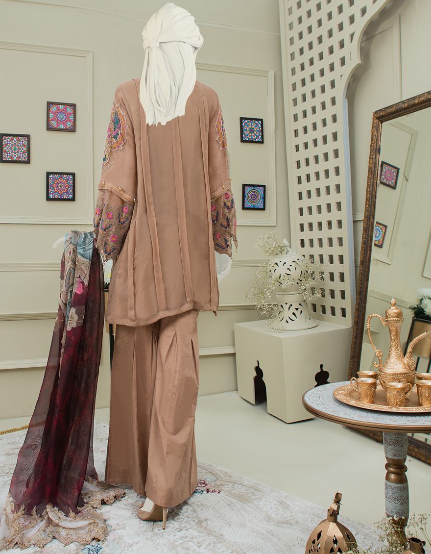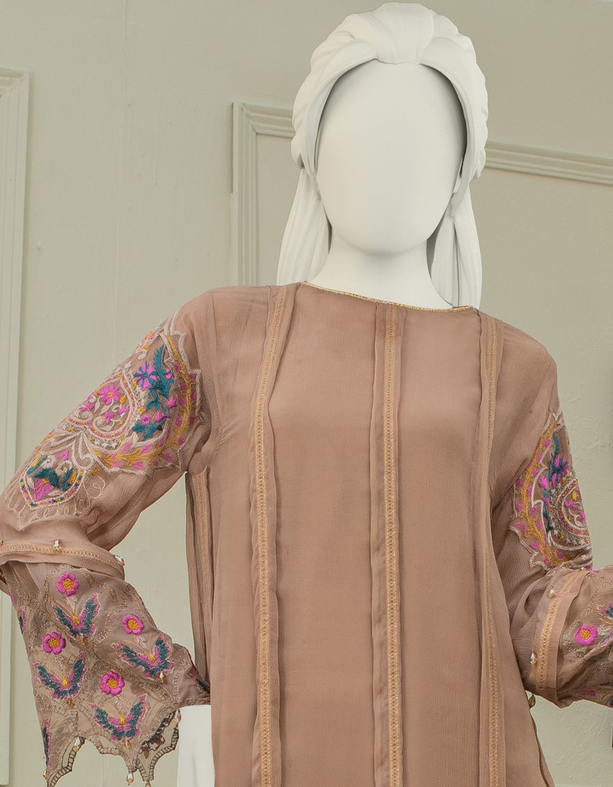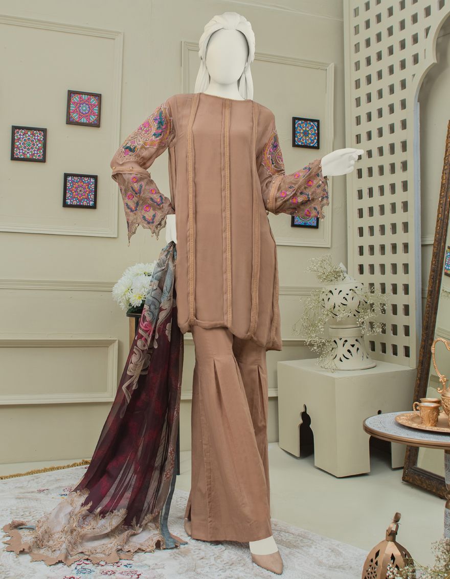 Collection Type: Embroidered Dyed Bemberg Chiffon Shirt With Crape Inner - Dyed Basic Lawn Trouser - Basic Mill Print Impure Silk Dupatta