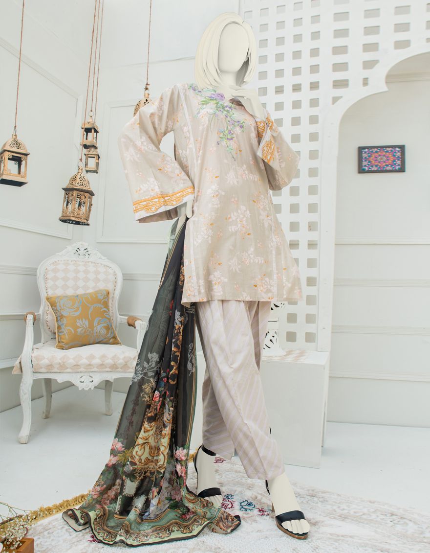 Collection Type: Embroidered Mill Print Lawn Shirt - Mill Print Basic Lawn Trouser - Basic Burnout Lawn Dupatta
