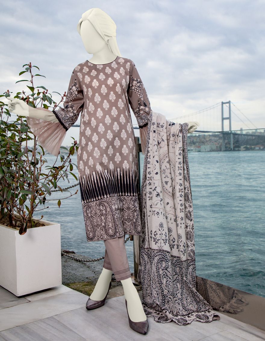 BROWN LAWN 3PC UNSTITCHED | JLAWN-S-US-21-186 AMARE