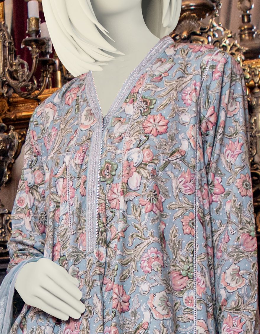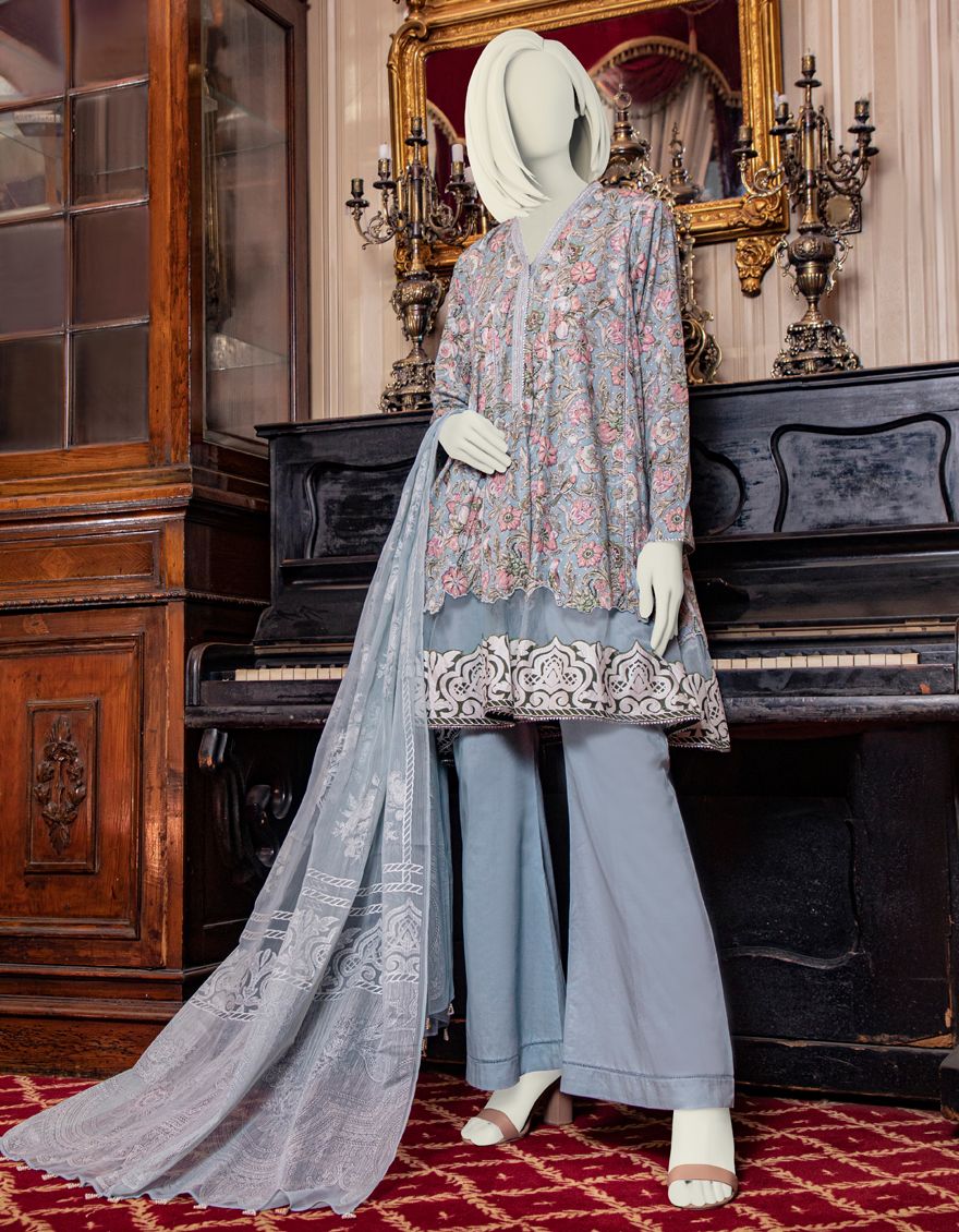 BLUE LAWN 3PC UNSTITCHED | JLAWN-S-US-21-200 ROZHAN