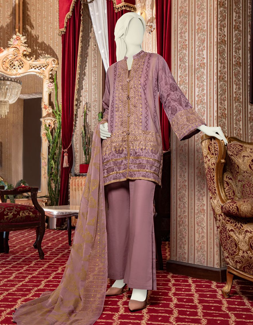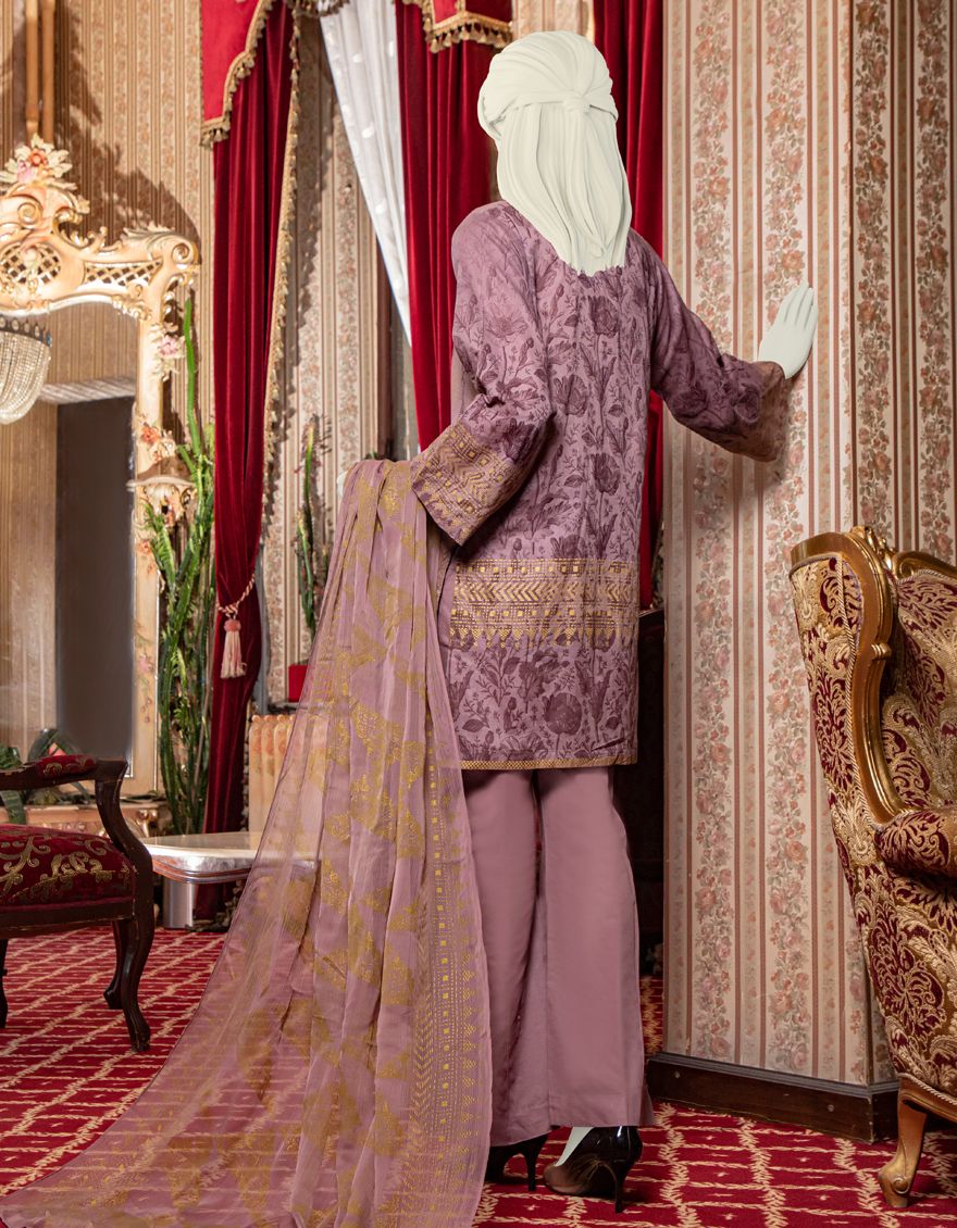 LILAC-BROWN LAWN 3PC UNSTITCHED | JLAWN-S-US-21-204 ZANE