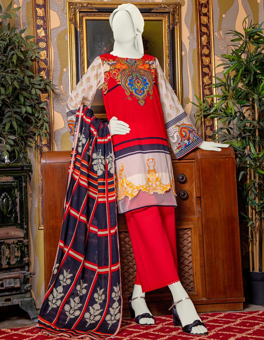 RED LAWN 3PC UNSTITCHED | JLAWN-S-US-21-211 MAGICAL