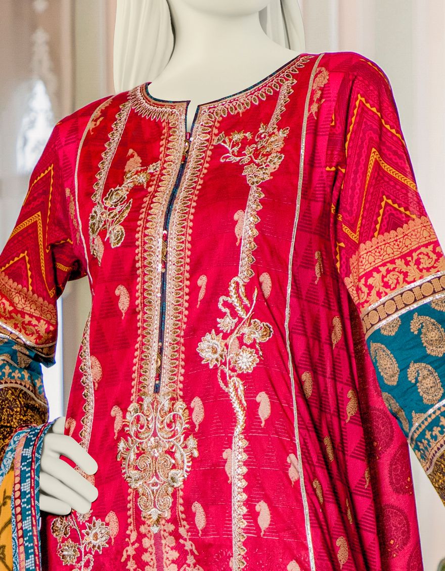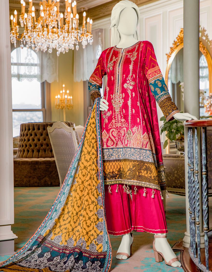 RED LAWN 3PC UNSTITCHED | JLAWN-S-US-21-221 RED DUST