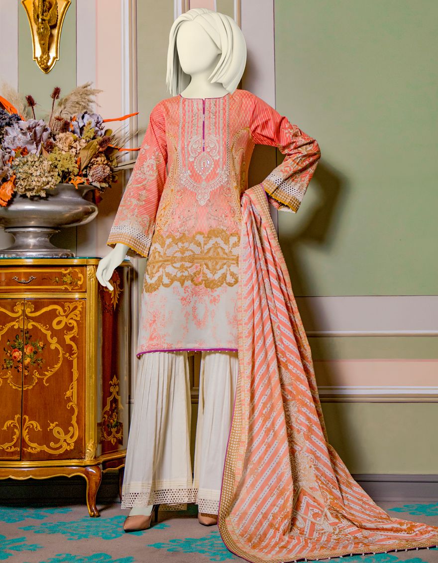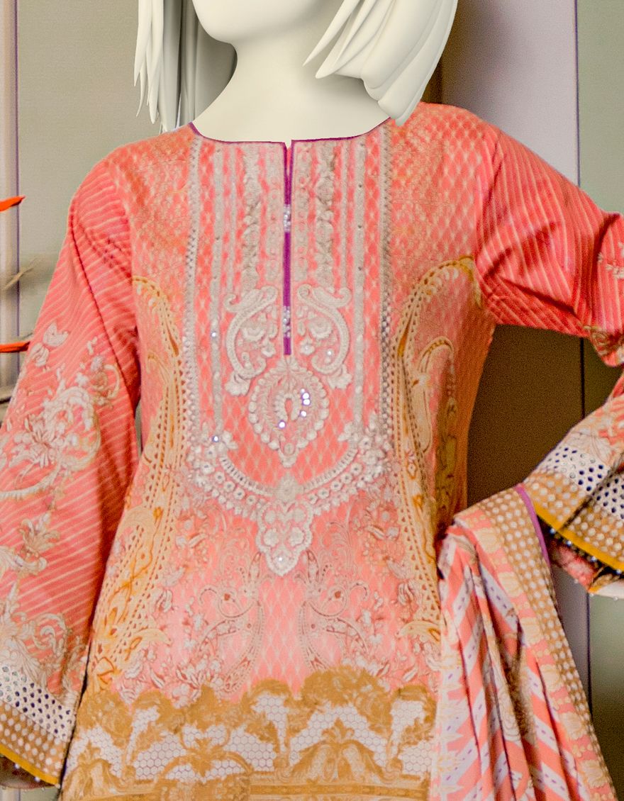 PEACH LAWN 3PC UNSTITCHED | JLAWN-S-US-21-222 PEACH DUST