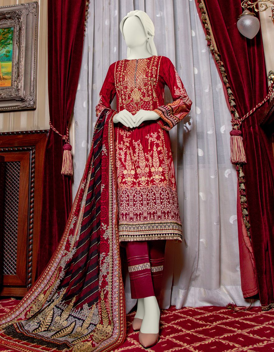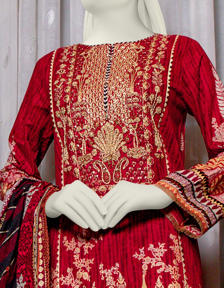 RED LAWN 3PC UNSTITCHED | JLAWN-S-US-21-223 SKY WAY