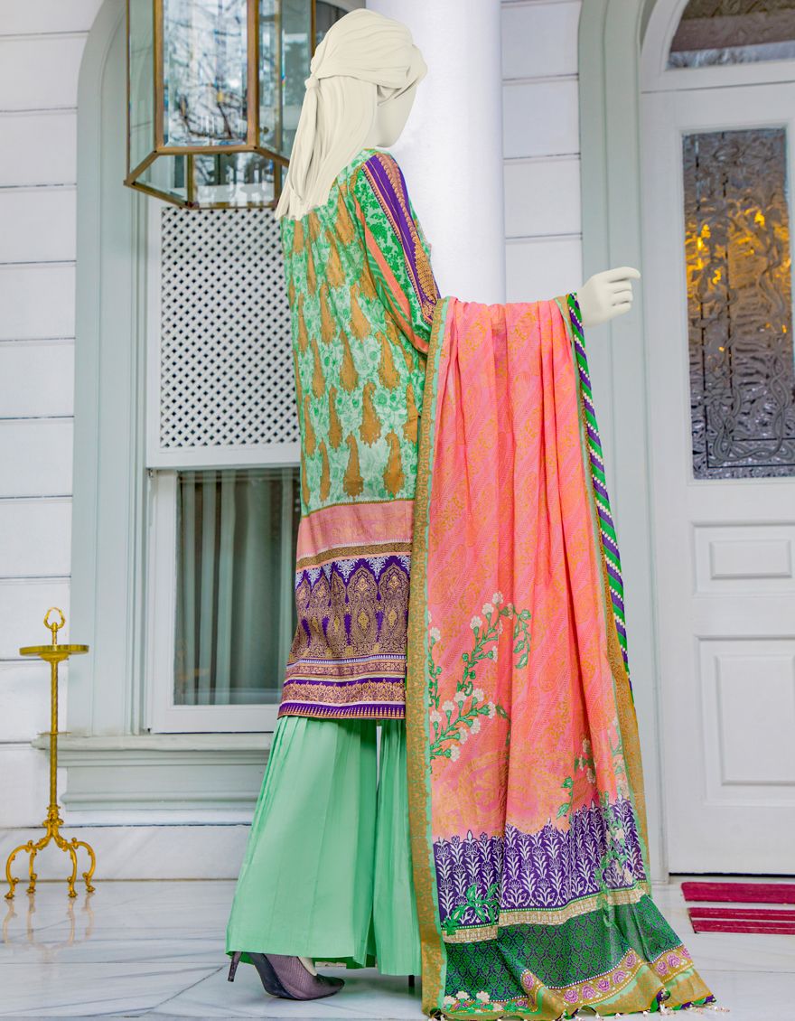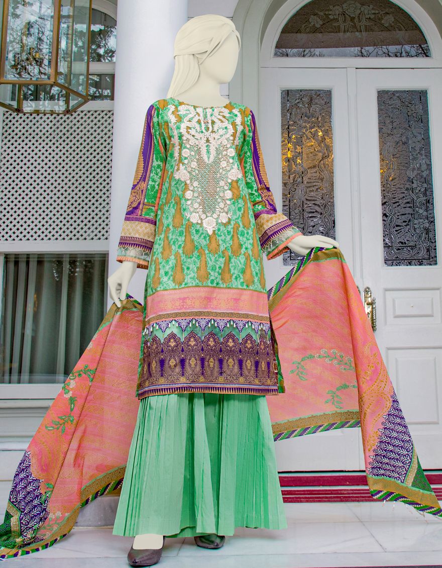 PISTASHO GREEN LAWN 3PC UNSTITCHED | JLAWN-S-US-21-225 PASTEL DUST