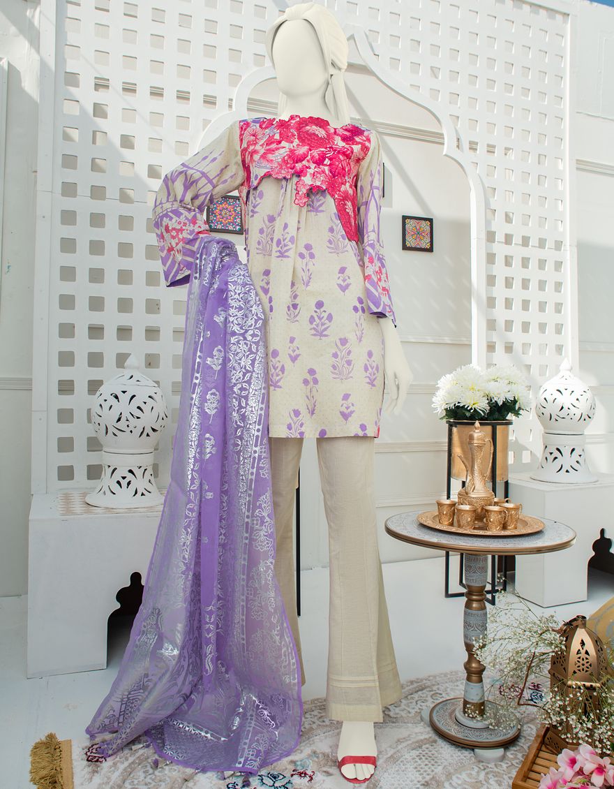 LILAC CREAM LAWN 3PC UNSTITCHED | JLAWN-S-US-21-226 GUAHAR