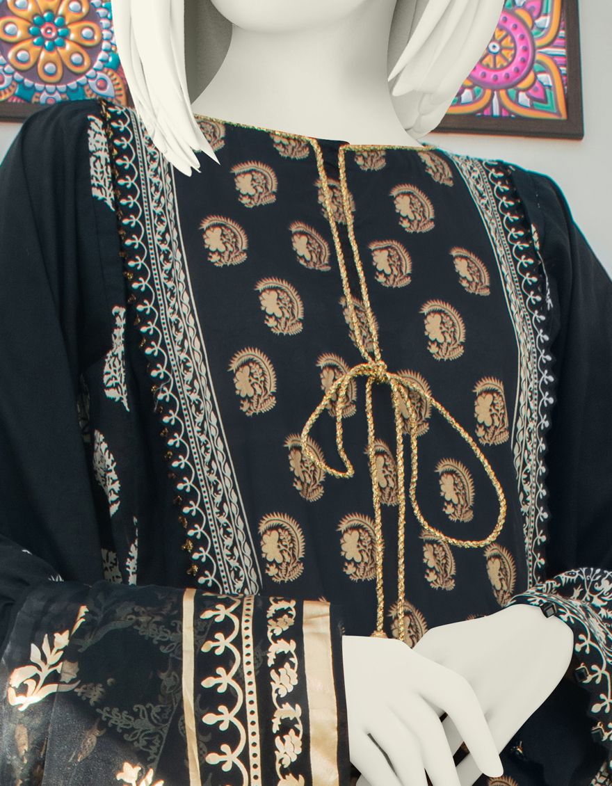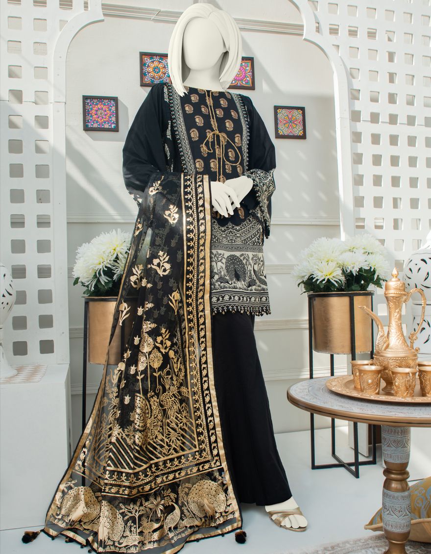 BLACK LAWN 3PC UNSTITCHED | JLAWN-S-US-21-228 QAREENY