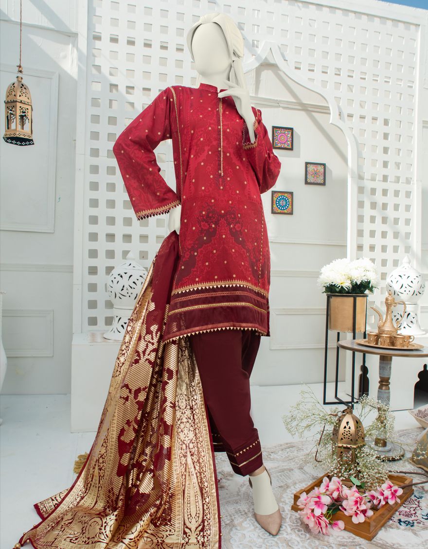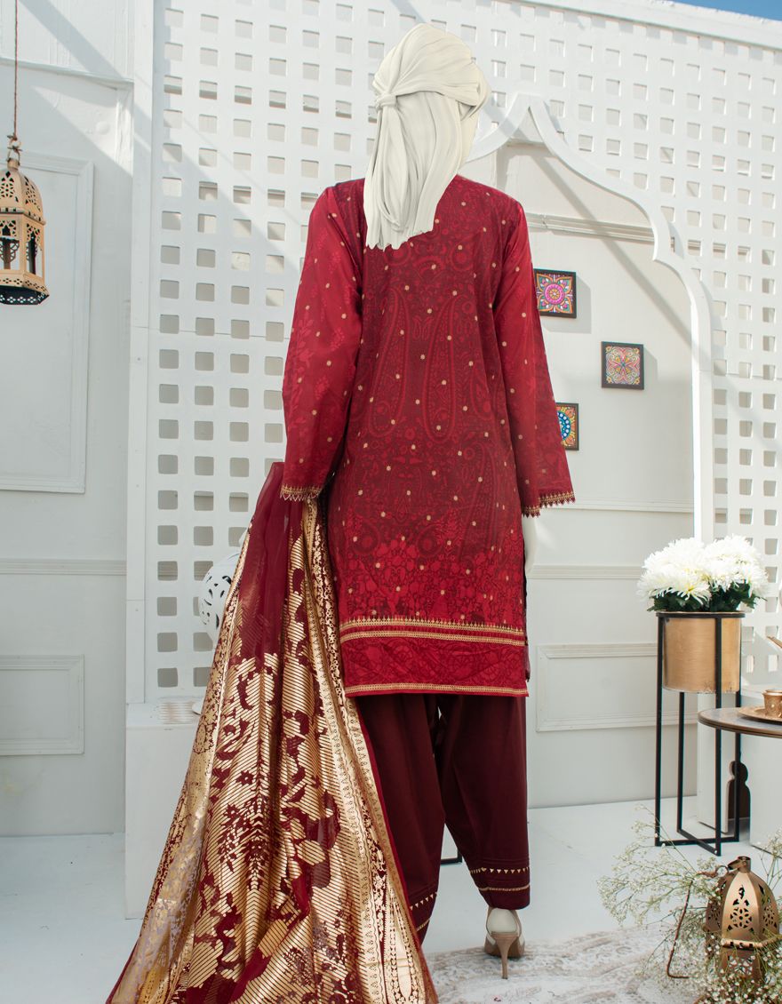 MAROON-RED LAWN 3PC UNSTITCHED | JLAWN-S-US-21-229 VOVA