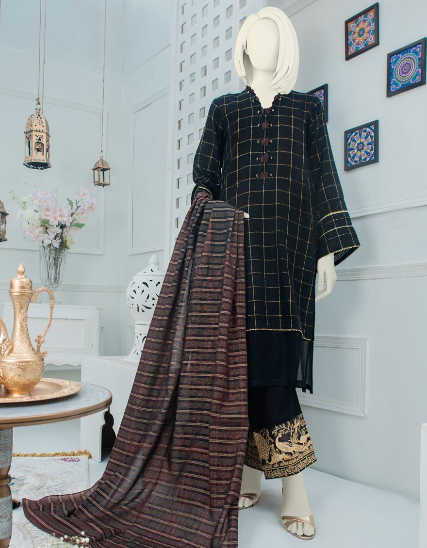 BLACK LAWN 3PC UNSTITCHED | JLAWN-S-US-21-234 KRAYR