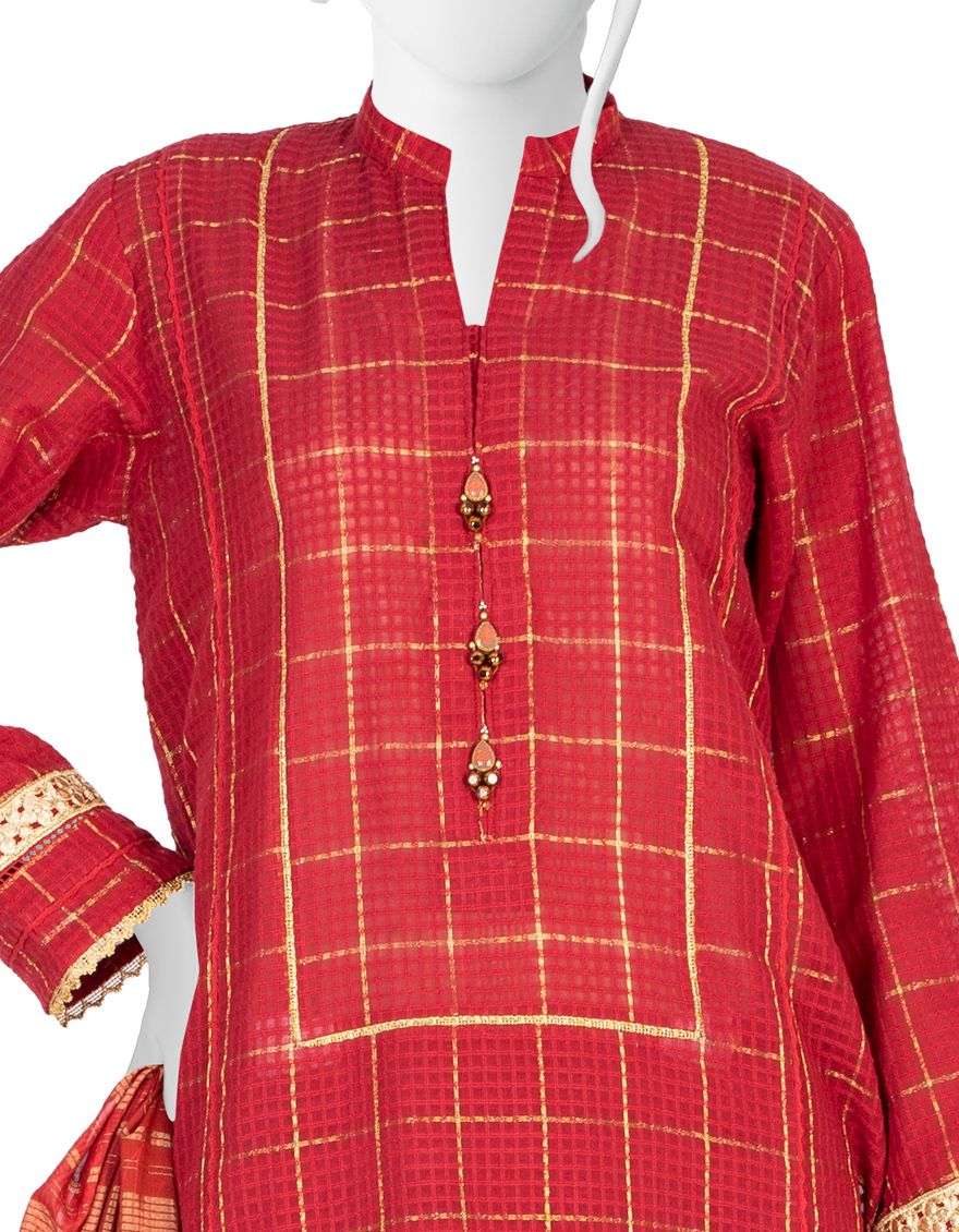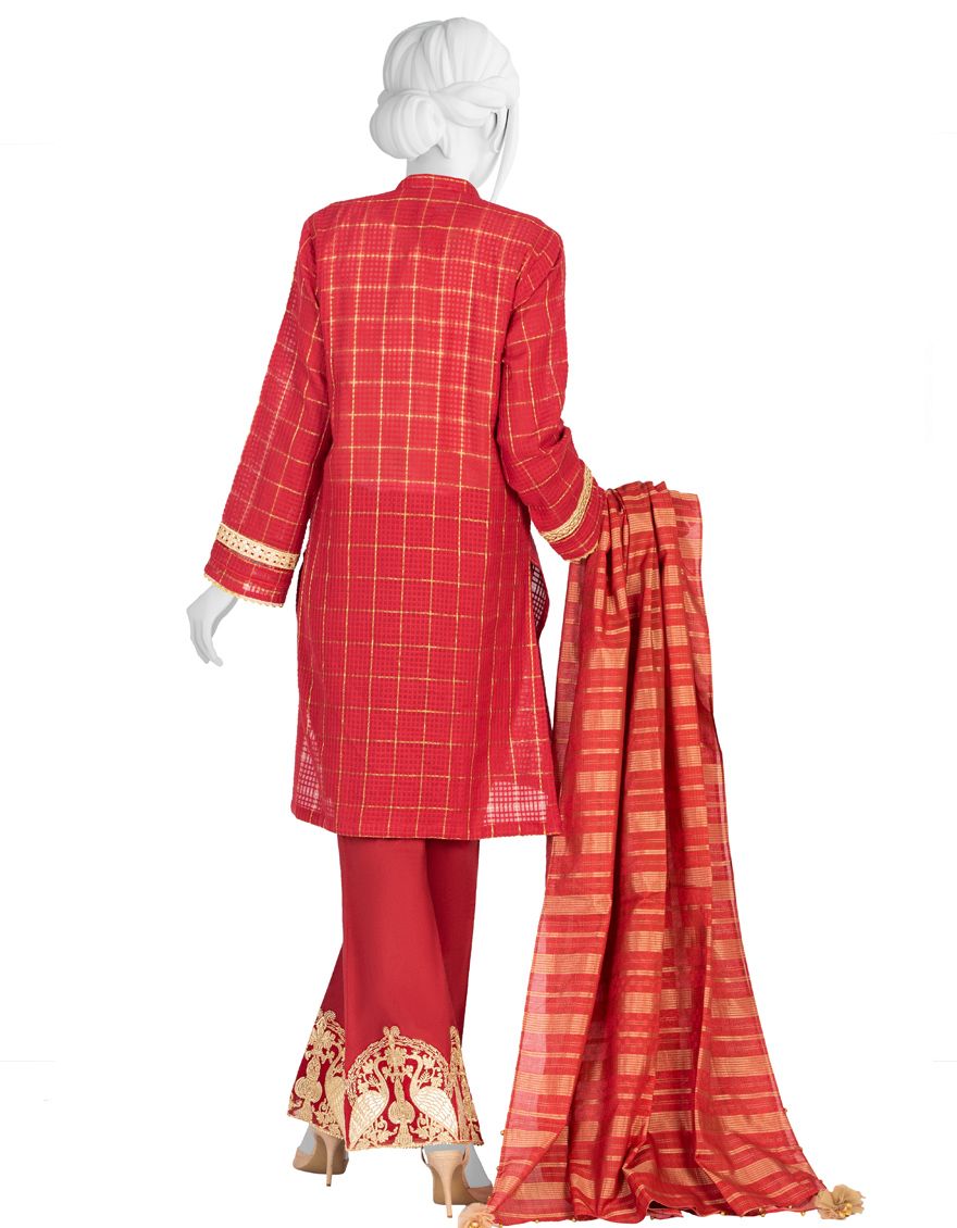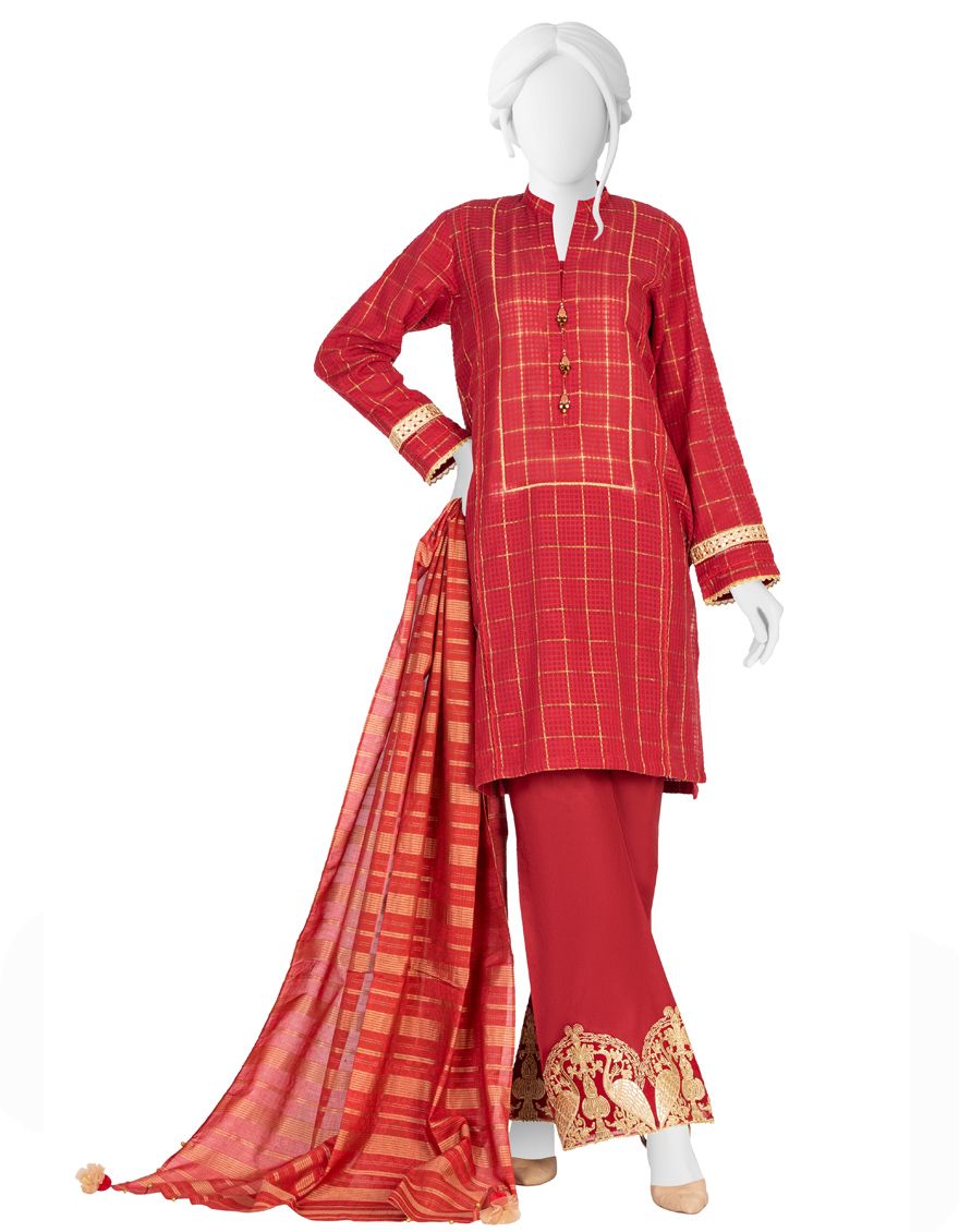 RED LAWN 3PC UNSTITCHED | JLAWN-S-US-21-235 MEIRA