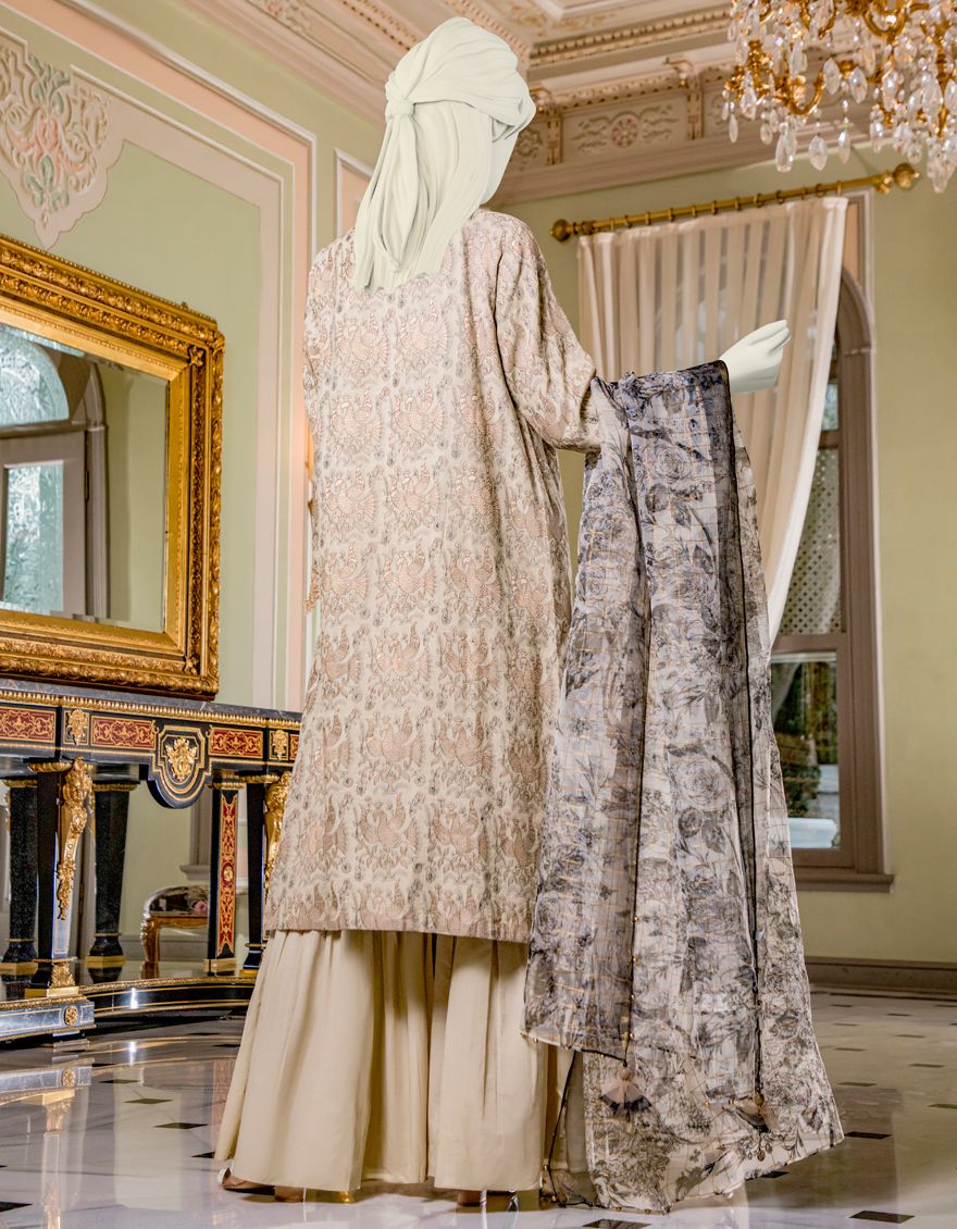 Embroidered Jacquard Shirt With Organza Dupatta - Lawn Trouser
