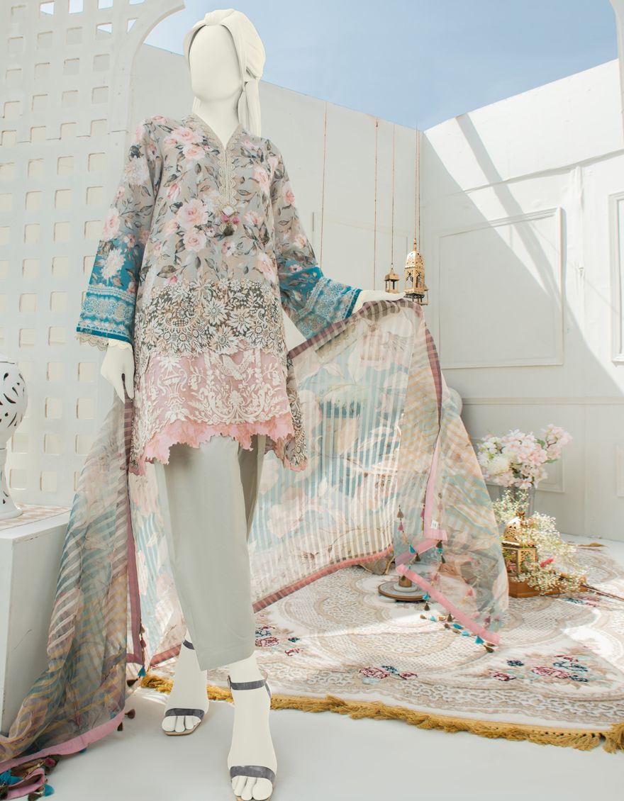 GREY-PINK LAWN 3PC UNSTITCHED | JLAWN-S-US-21-243 PIRAMIT