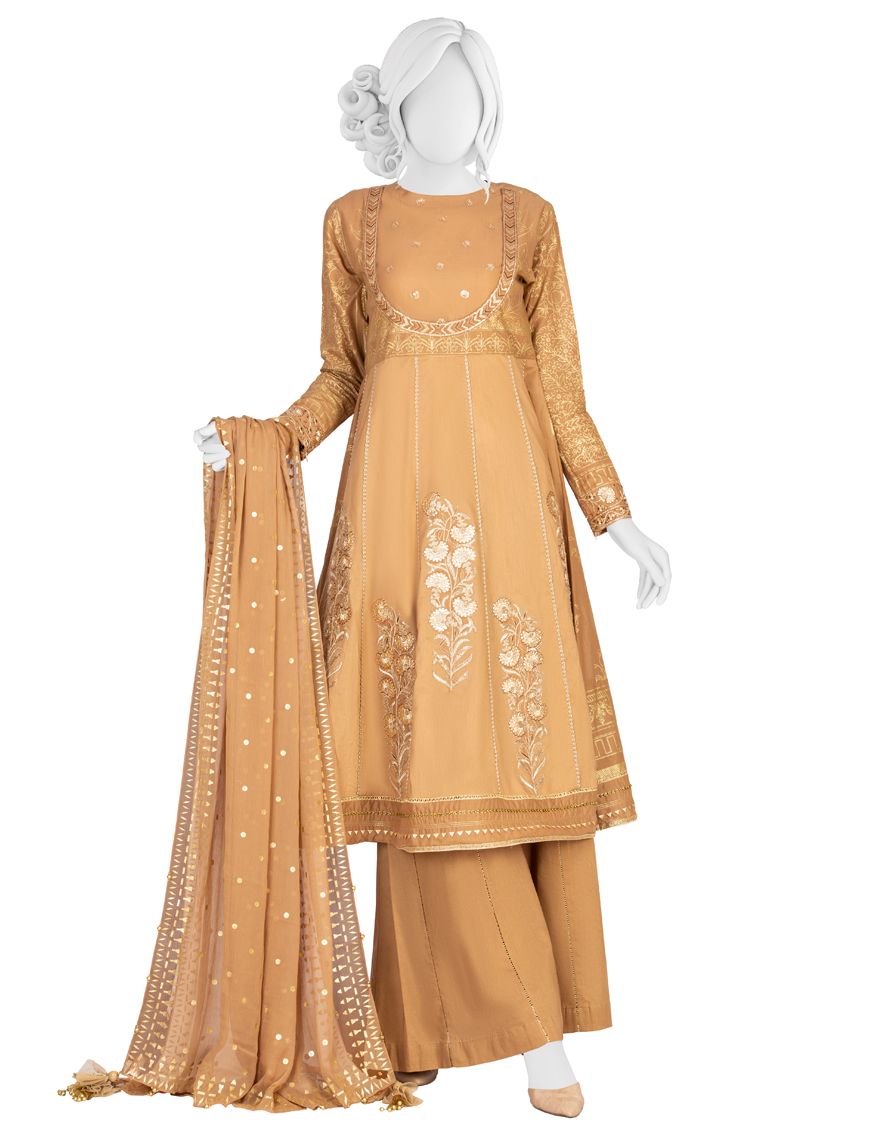 BLACK GRAPE LAWN 3PC UNSTITCHED | JLAWN-S-US-21-256 BEIGE