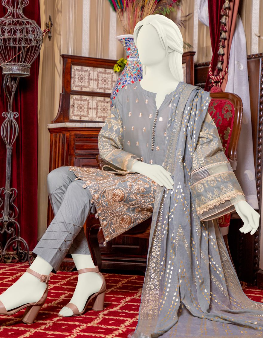 GREY LAWN 3PC UNSTITCHED | JLAWN-S-US-21-259 GREY