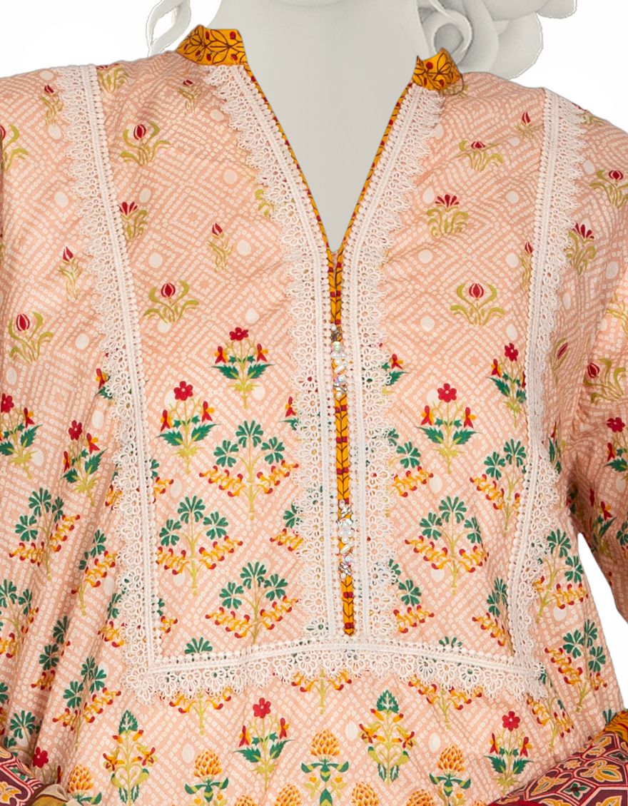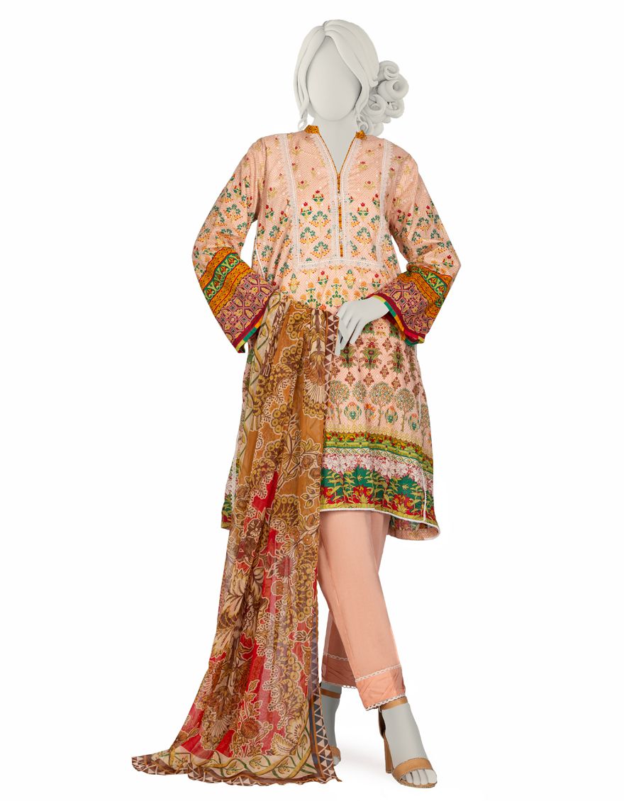 Collection Type: Basic Mill Print Lawn Shirt - Dyed Laced/Cut Lawn Trouser - Basic Mill Print Impure Chiffon Dupatta