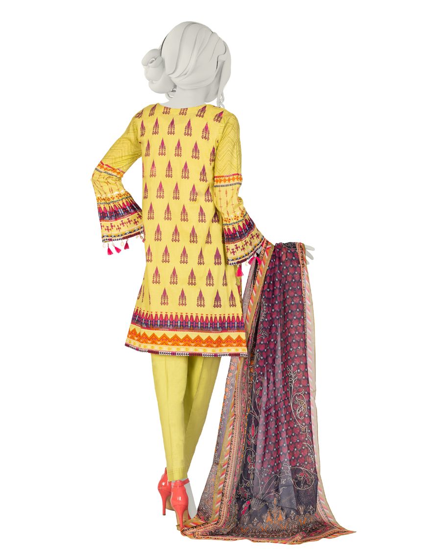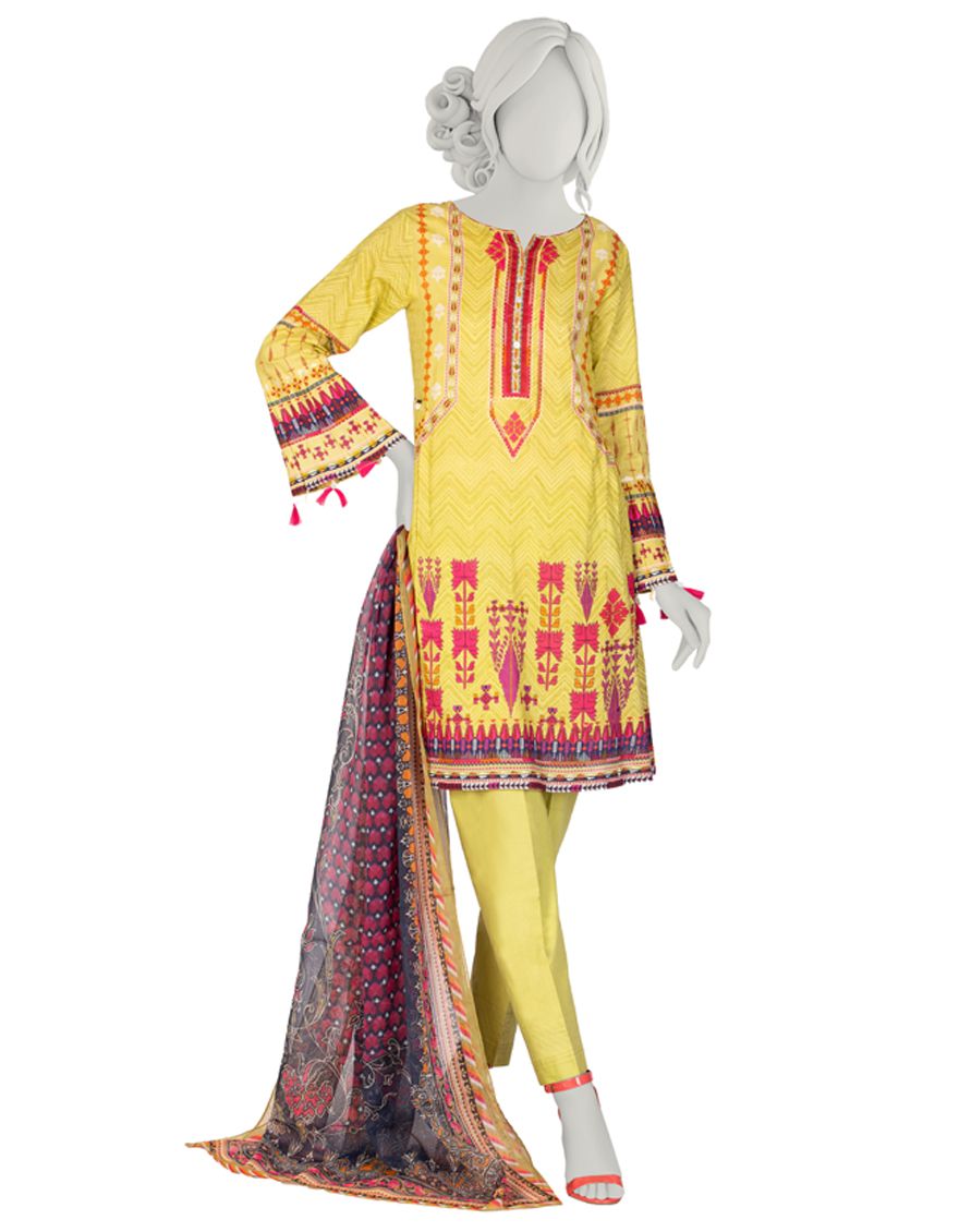 Collection Type: Basic Mill Print Lawn Shirt - Dyed Laced/Cut Lawn Trouser - Basic Mill Print Impure Chiffon Dupatta