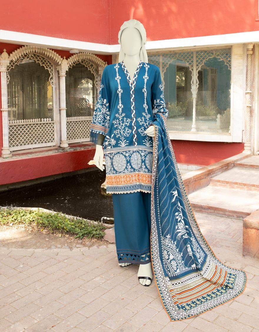 BLUE LAWN 3PC UNSTITCHED | JLAWN-S-US-21-274 MEHAR