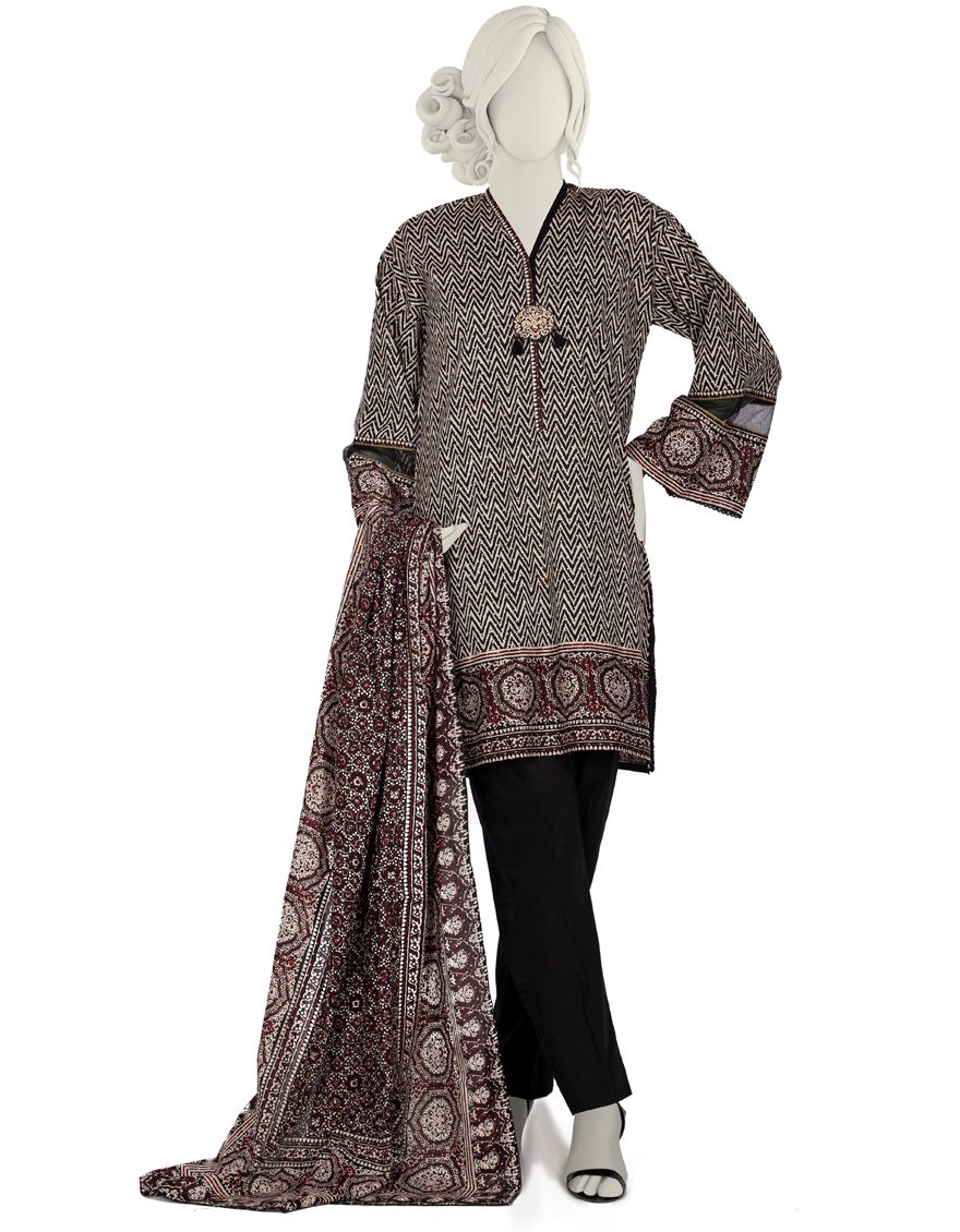 Collection: Basic Gold & Mill Print Lawn Shirt - Dyed Basic Lawn Trouser - Basic Gold & Mill Print Lawn Dupatta