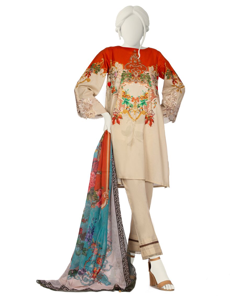 Collection: Embroidery Digital Print Lawn Shirt - Dyed Basic Lawn Trouser - Basic Digital Print Impure Chiffon Dupatta