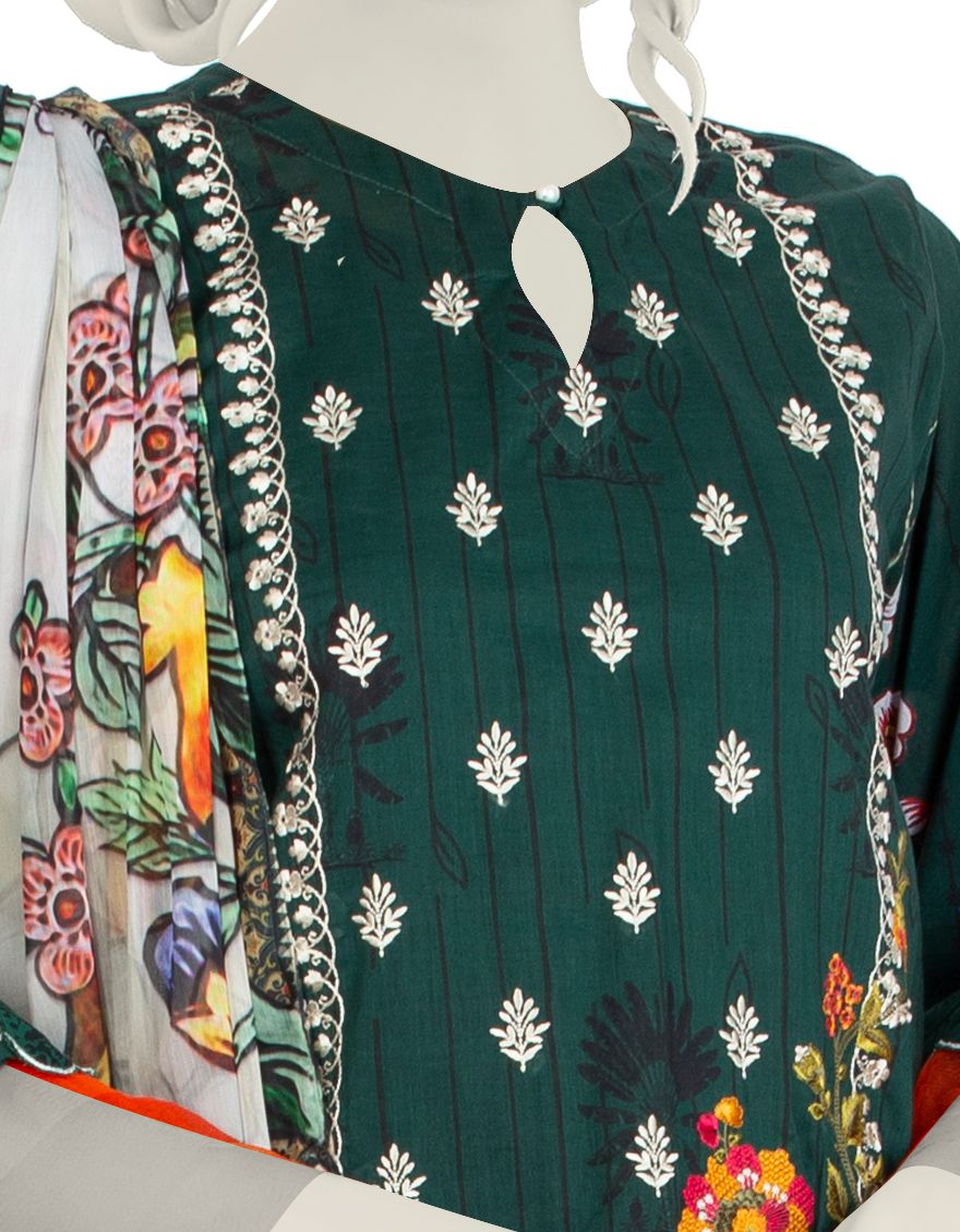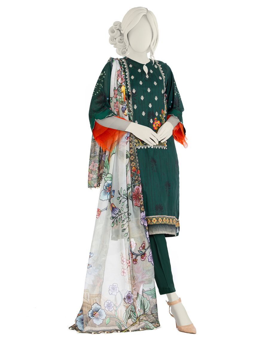 Collection: Embroidery Digital Print Lawn Shirt - Dyed Basic Lawn Trouser - Basic Digital Print Impure Chiffon Dupatta