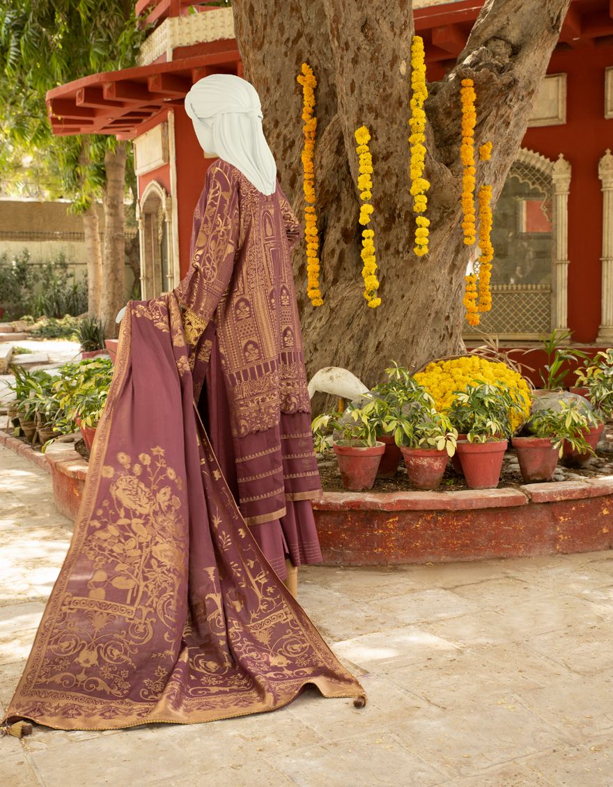 Embroidered Jacquard Shirt With Jacquard Dupatta With Trouser