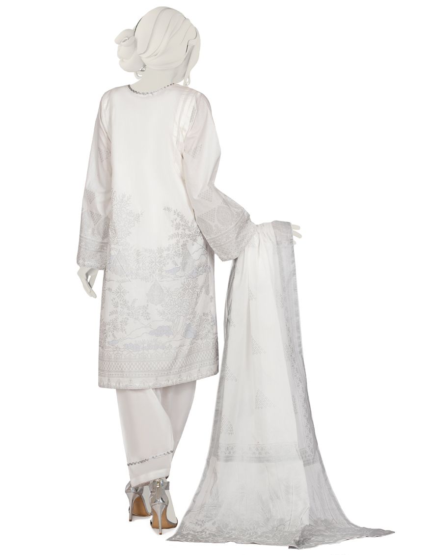 Collection: Heavy Embroidered Gold & Mill Print Lawn Shirt - Dyed Laced/Cut Lawn Trouser - Basic Gold & Mill Print Lawn Dupatta