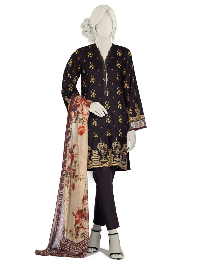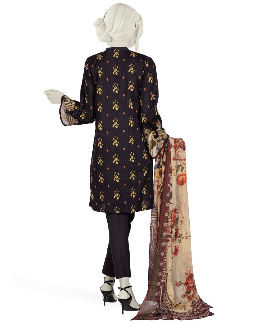 Collection: Heavy Embroidered Mill Print Lawn Shirt - Dyed Laced/Cut Lawn Trouser - Basic Mill Print Bemberg Chiffon Dupatta
