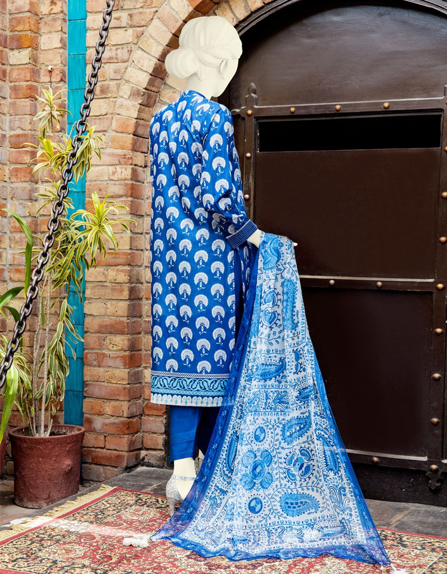 ROYAL BLUE LAWN 3PC UNSTITCHED | JLAWN-S-US-21-308 YAROSLAV