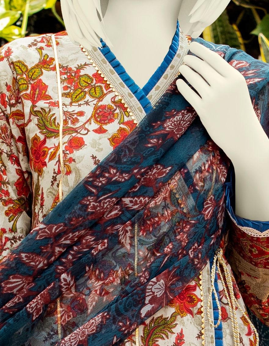 MULTICOLOR LAWN 3PC UNSTITCHED | JLAWN-S-US-21-314 TEAL
