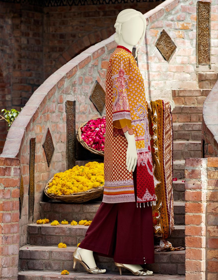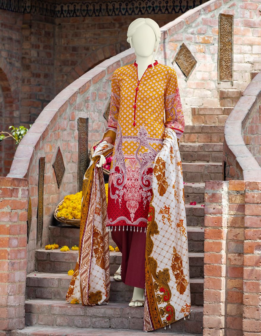 MUSTARD LAWN 3PC UNSTITCHED | JLAWN-S-US-21-330 RAFFAL