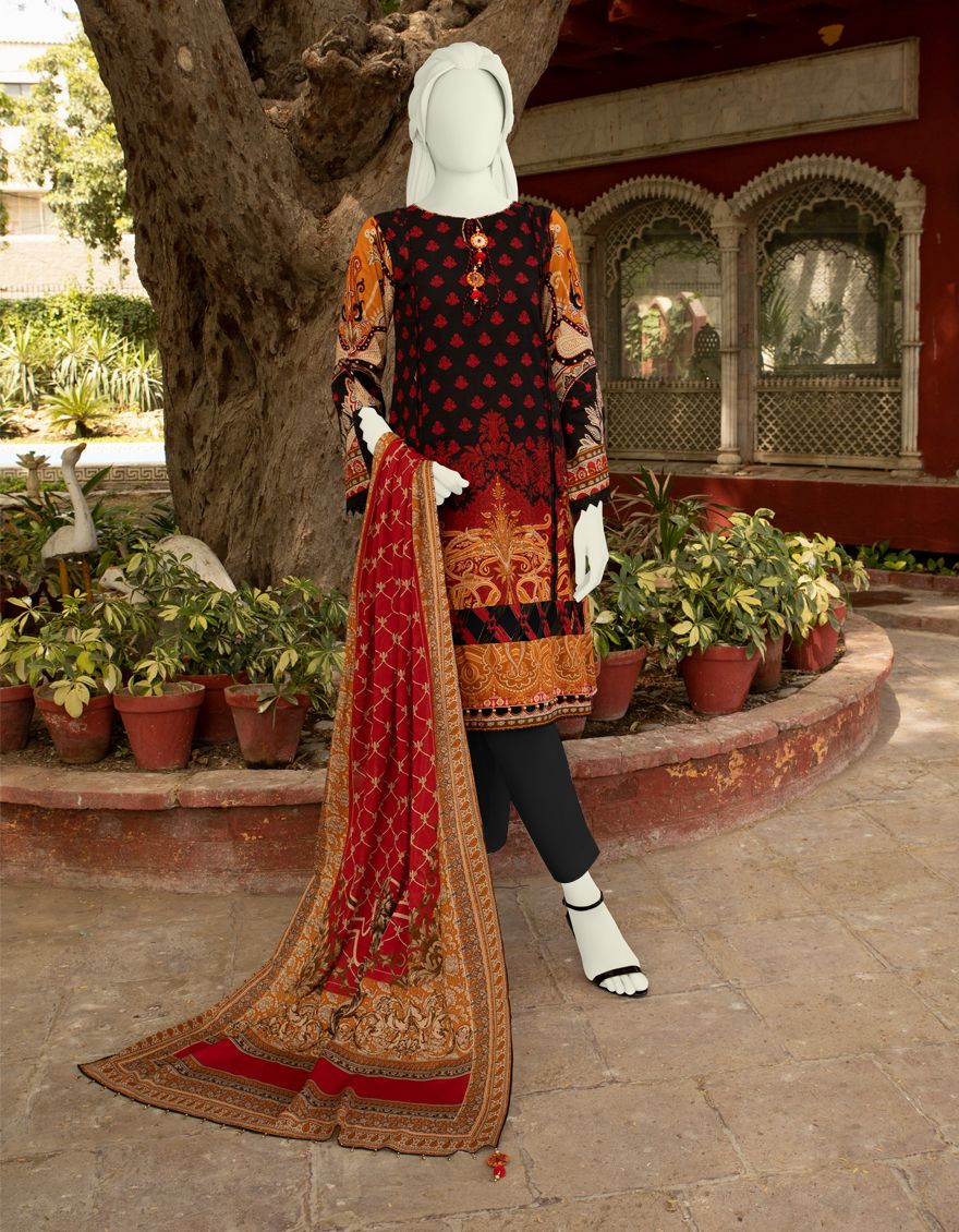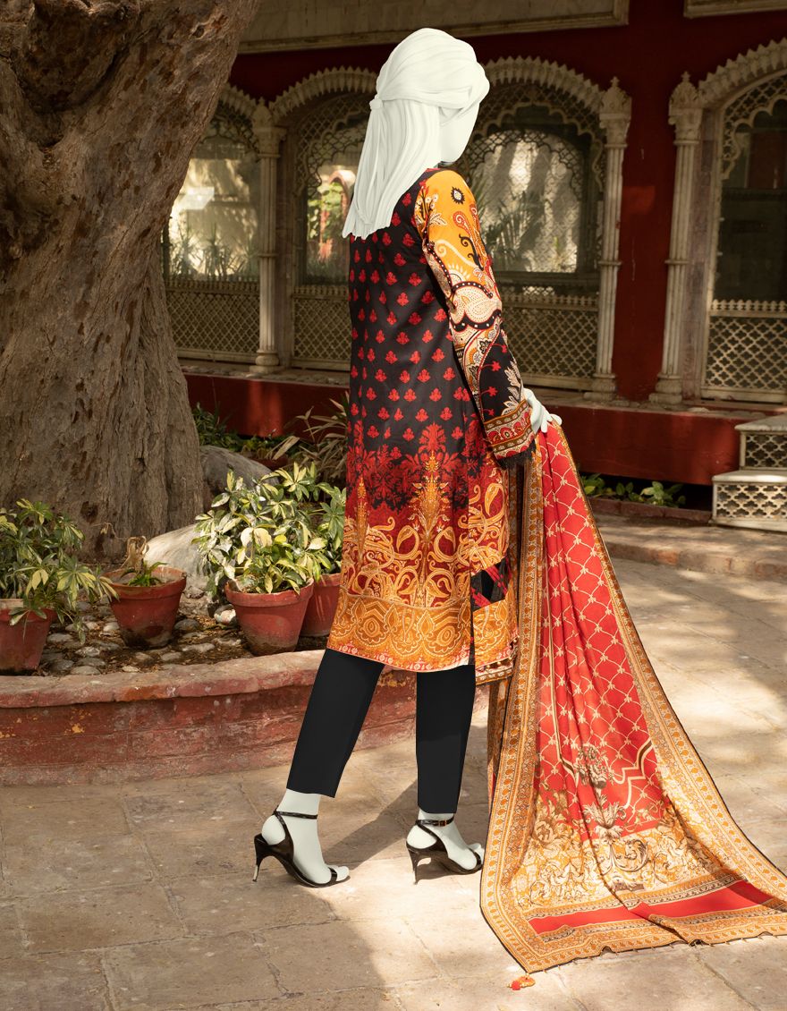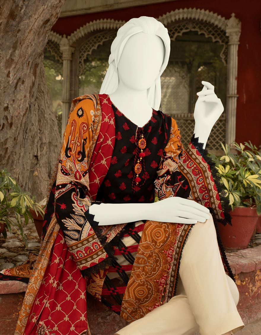 RED-BLACK LAWN 3PC UNSTITCHED | JLAWN-S-US-21-336/A BLACK N MUSTARD
