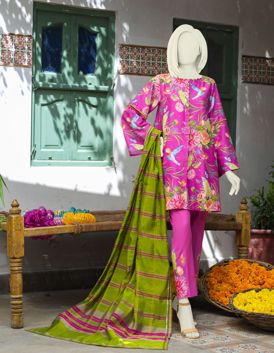 PINK LAWN 3PC UNSTITCHED | JLAWN-S-US-21-358 ZHENYA